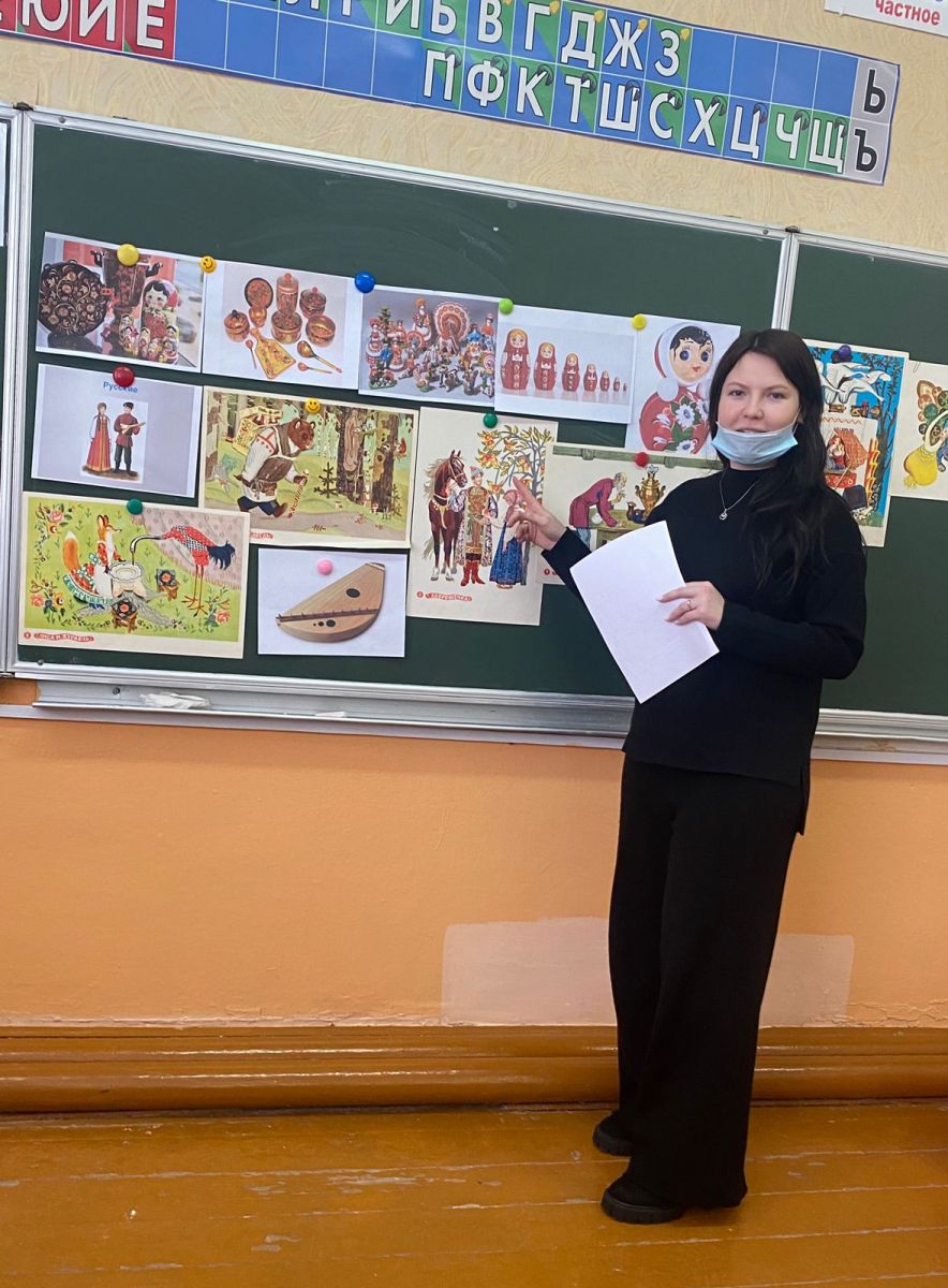 19 января в 3 классе библиотекарь филиала ЦБ, Эльза Владимировна провела мероприятие «Русское народное творчество», посвященное Году народного искусства и культурного наследия народов России.