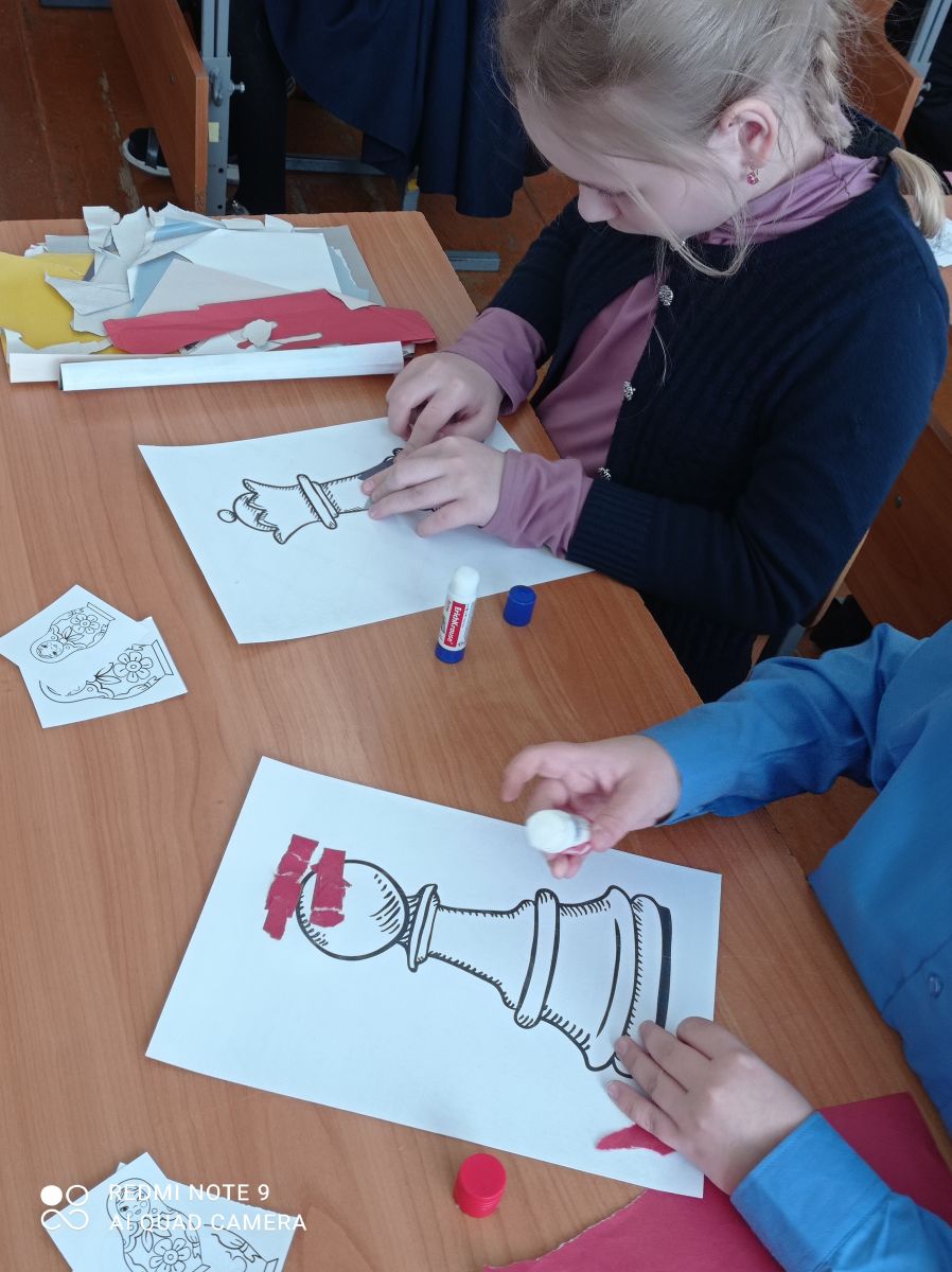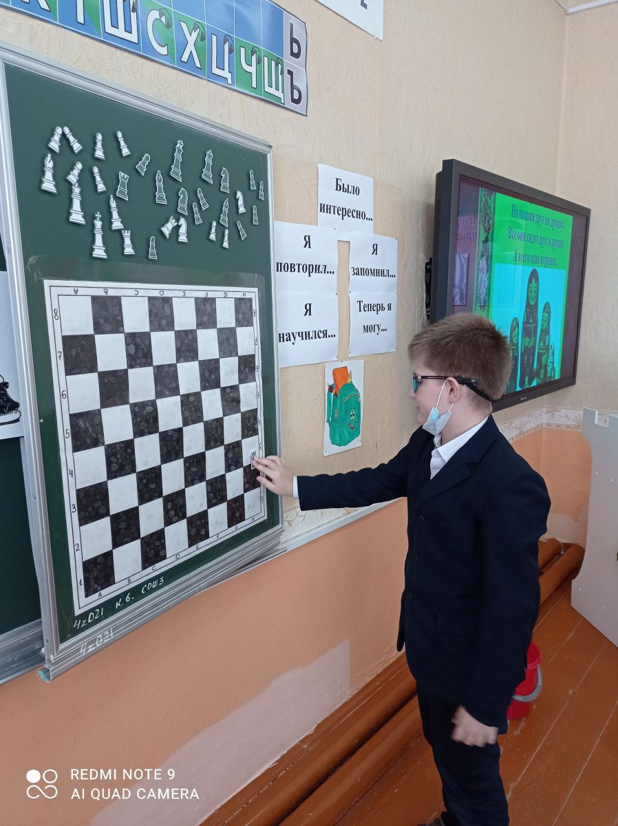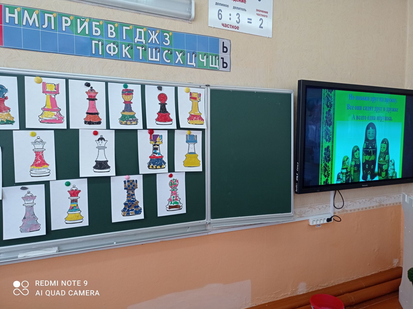 7 февраля в 3 классе прошло интегрированное внеурочное занятие по родному языку и шахматам.Во время занятия учащиеся обогащали свои знания об истории и особенностях русского национального костюма, отвечали на вопросы литературной викторины, решали шахматные задачи и придумали «нарядные костюмы» для шахматных фигур. -