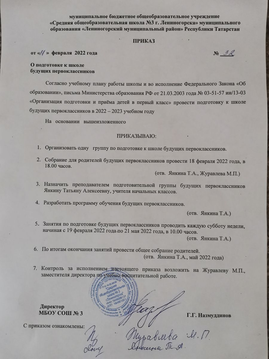 Приказ №32 от 11_02_2022 г_ О подготовке к школе будущих первоклассников на 2022-2023 учебный год