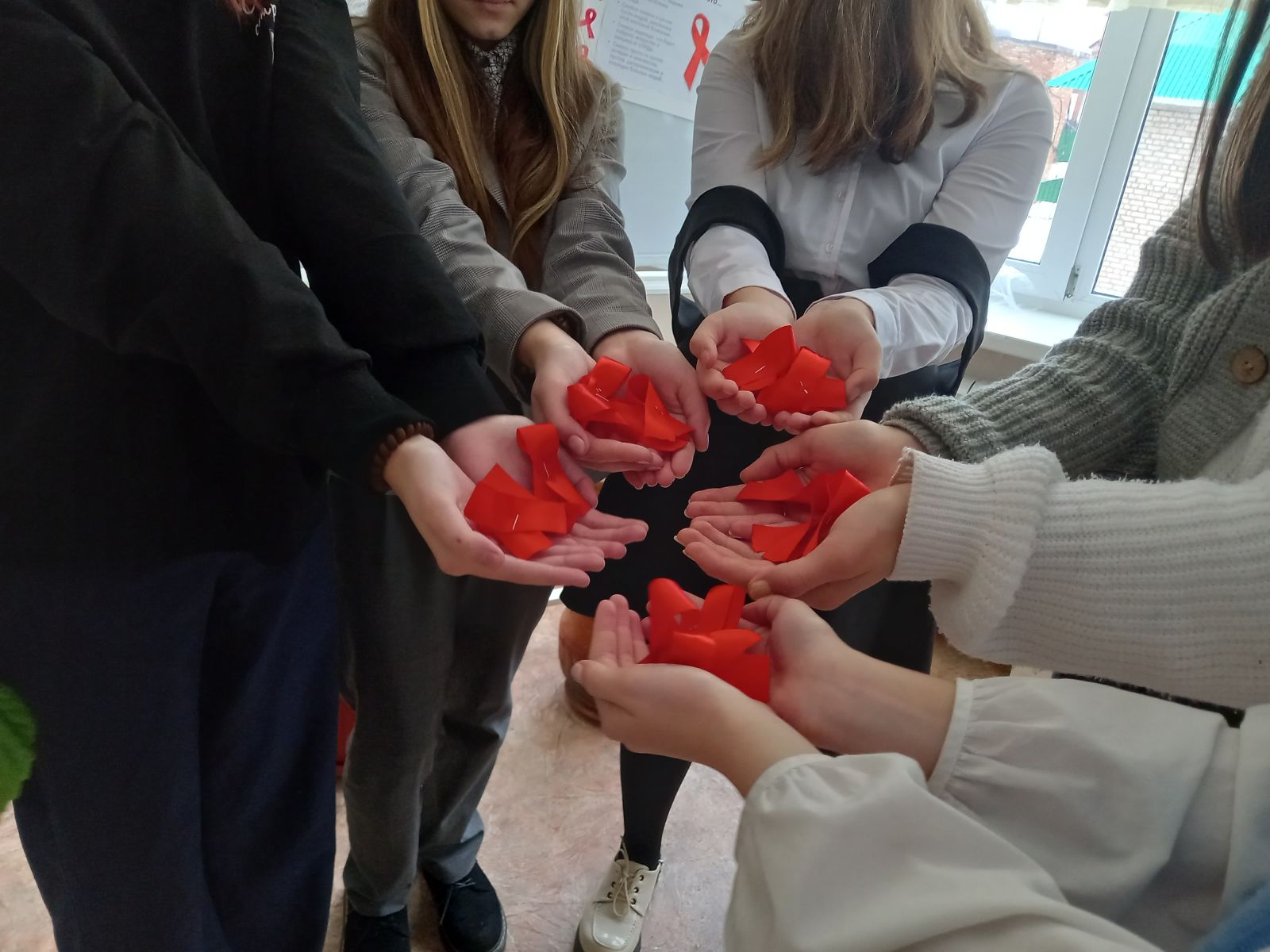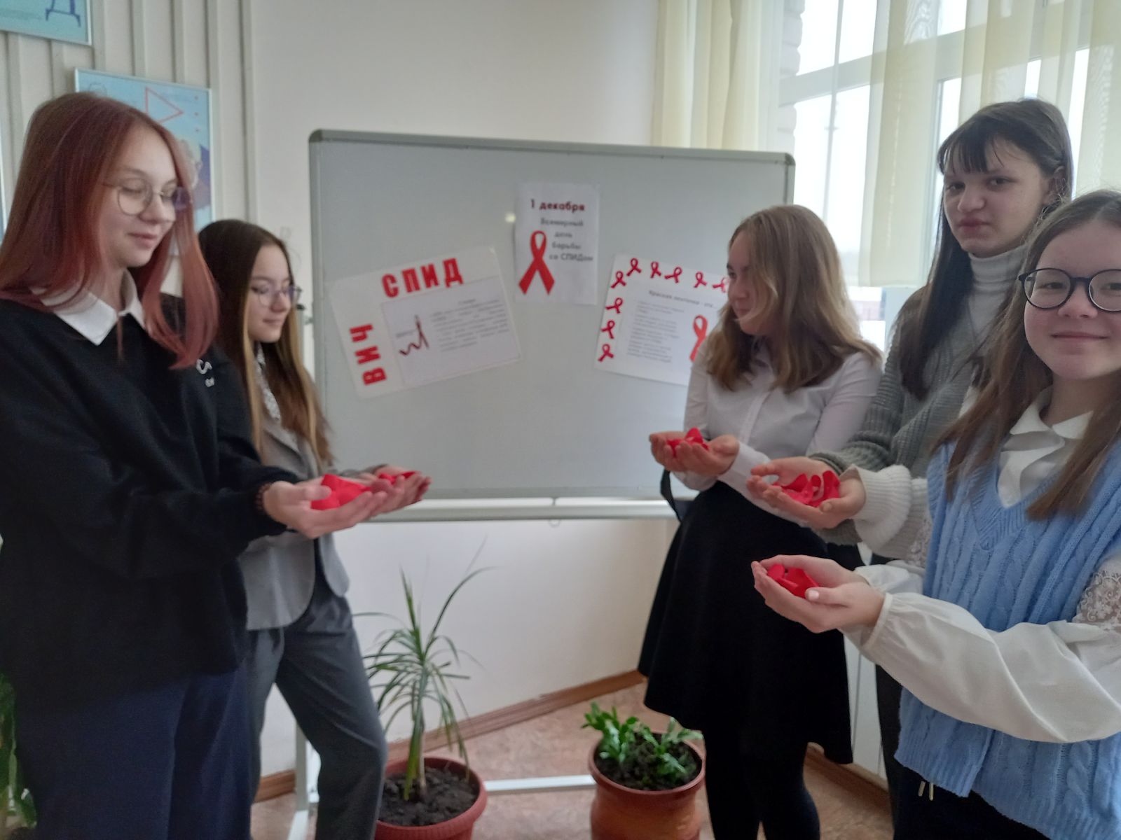 Ежегодно, в соответствии с решением Всемирной организации здравоохранения (ВОЗ) и Генеральной Ассамблеи Организации Объединенных Наций (ООН), принятым в декабре 1988 года – 1 декабря отмечается Всемирный день борьбы со СПИДом.В нашей школе стало традицией проводить мероприятия, посвященные этому дню. Цель проведения мероприятий: выработка активной жизненной позиции по предотвращению поведенческих рисков, связанных с возможностью заражения ВИЧ; формирования убеждения в необходимости соблюдения здорового образа жизни с целью профилактики ВИЧ-инфекции; формирование представления о реальных масштабах распространения ВИЧ.Учащиеся 6 класса в этот день вручали красные ленточки учащимся и учителям школы, как символ памяти о сотнях тысяч людей, унесенных этой жестокой болезнью, символ надежды, что будет найдено лекарство и вакцина от СПИДа… -
