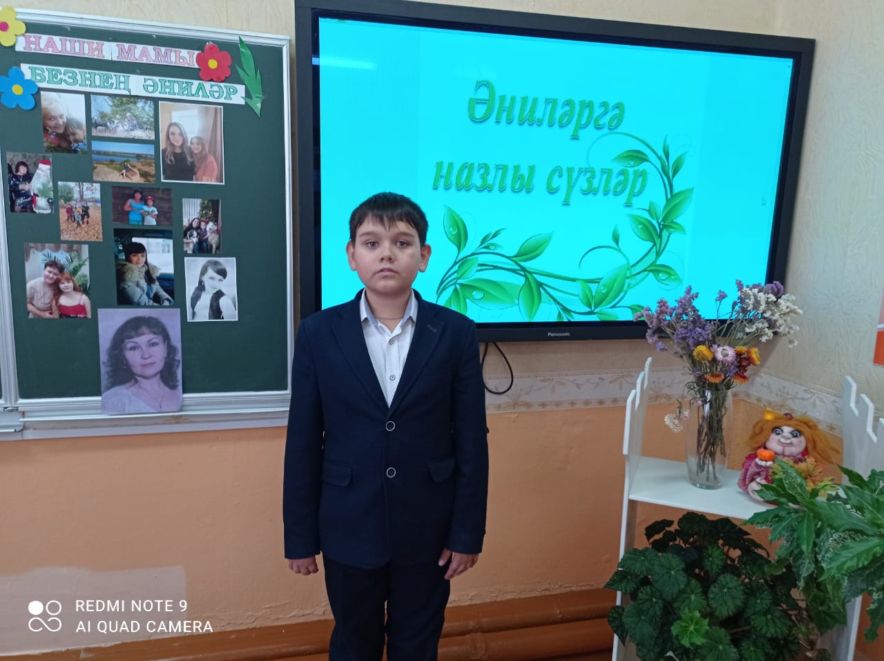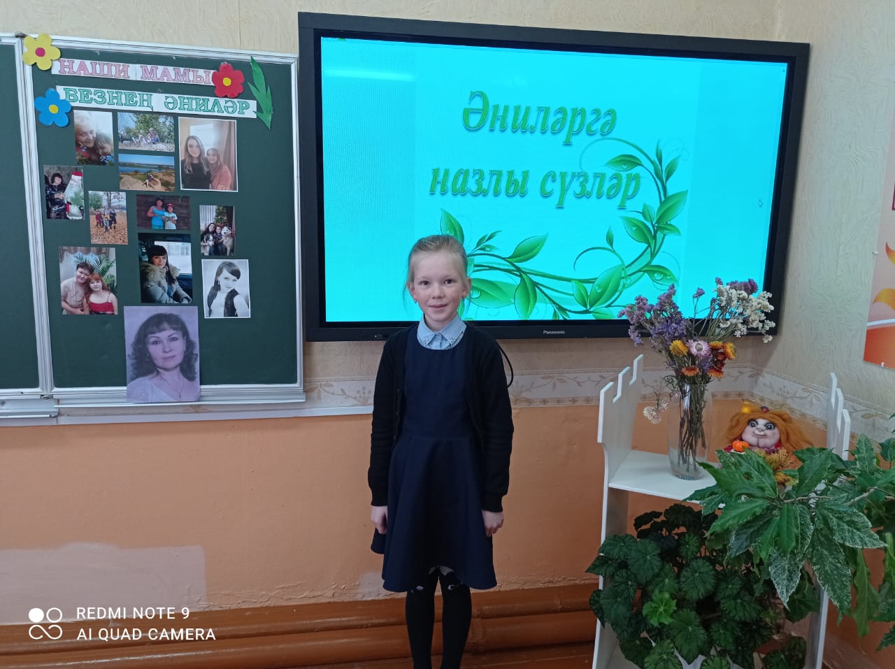 29ынчы ноябрь көнне татар теле һәм әдәбияты укытучысы Мөхетдинова Р.Ф. 3 енче сыйныф укучылары өчен «Әниләр сүзе» дип исемләнгән кичә уздырды. Кичәдә укучылар үзләренең әниләре турында сөйләделәр, җырлар башкардылар. Лепешкин Д., Бадртдинова С., Гилязова З., Хайруллина М. сыйныфташларына әниләр турында матур шигырьләр сөйләделәр.29 ноября учитель татарского языка и литературы Мухутдинова Р. Ф. провела для учащихся 3-х классов мероприятие «Слово матери». На празднике учащиеся рассказали о своих мамах, исполнили песни. Лепешкин Д., Бадртдинова С., Гилязова З., Хайруллина М. рассказали одноклассникам красивые стихи о маме.