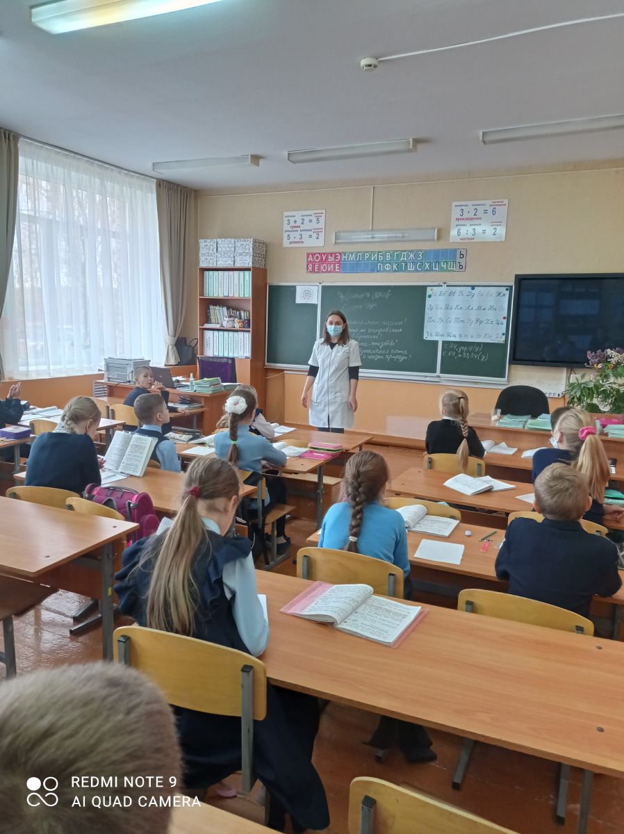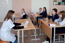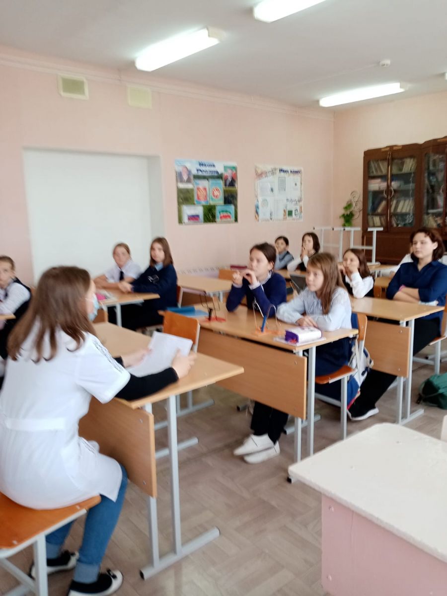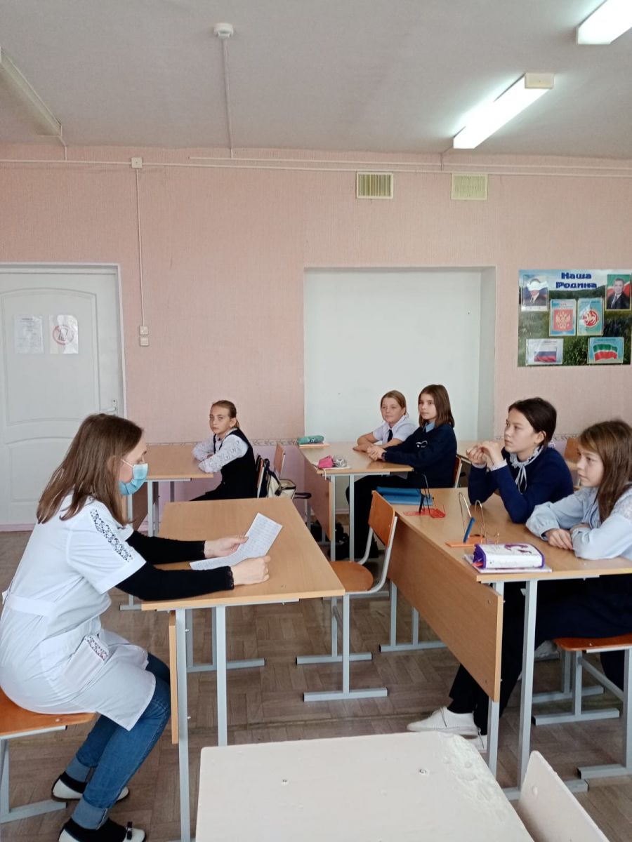 В рамках классного часа, фельдшер школы Блажнова Н.Н. проводила лекцию-беседу с девочками 5 класса (классный руководитель Замалиева И.Х.) о гигиене подростков-девочек и пользе сбалансированного питания. Отвечала на множественные вопросы, интересующие подростков. -
