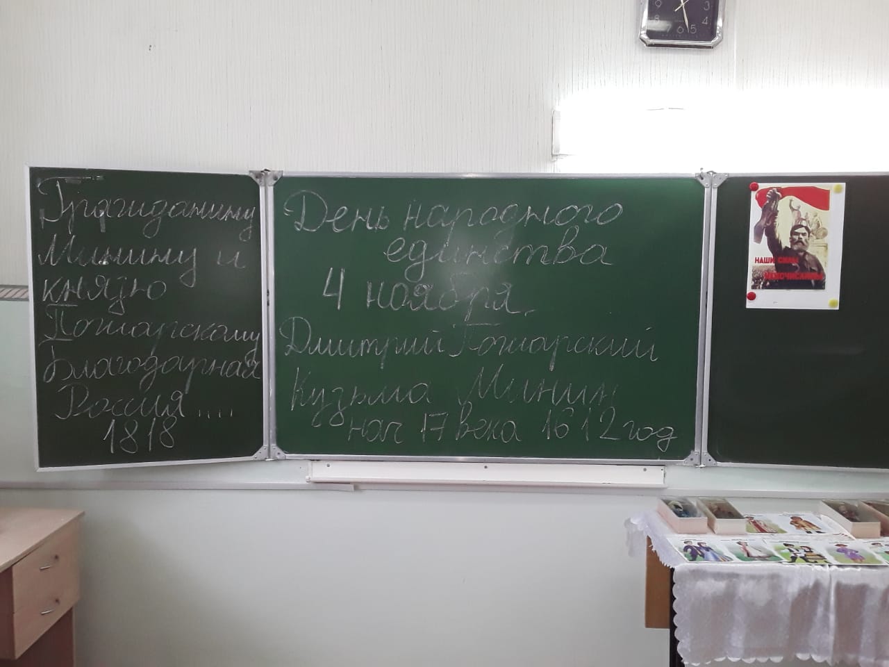 Бүген тарих укытучысы Кузнецова Н.Г. "Халыклар бердәмлеге көне"дигән темага тематик дәресләр үткәрә. Барлык теләүчеләрне 19 нчы кабинетка дәресләргә чакырабыз.Сегодня учитель истории Кузнецова Н. Г. проводит тематические уроки с организацией выставки на тему "День народного единства". Приглашаем всех желающих на уроки в кабинет №19. -