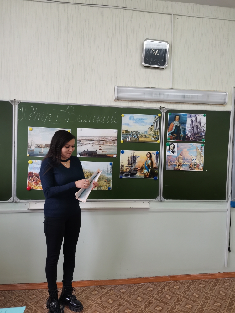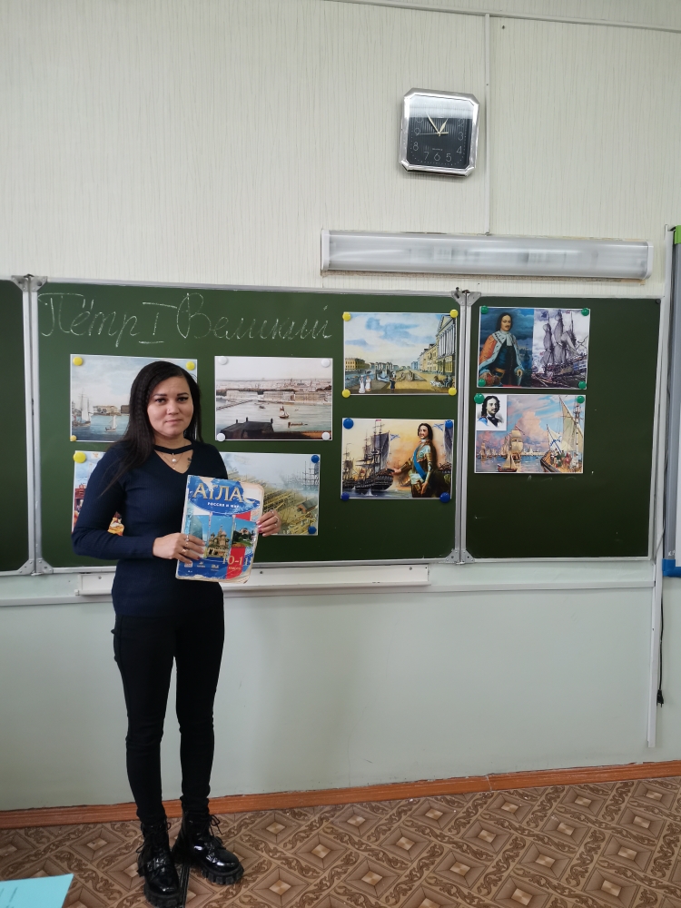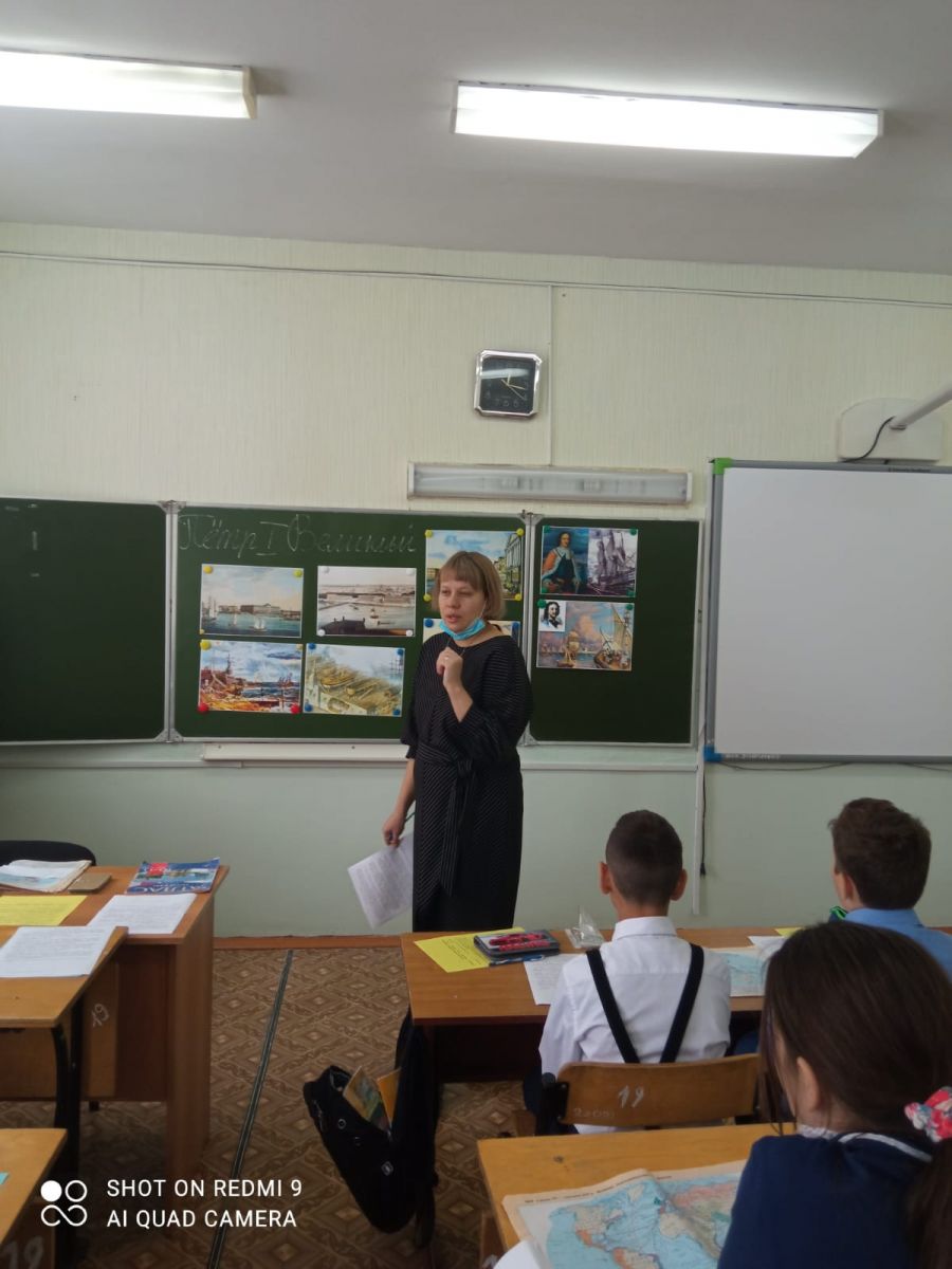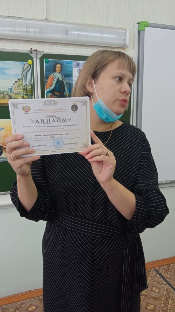 В рамках Всероссийского Петровского урока (Письмо МОиН РТ N316 от 28.05.2021) Н. Г. Кузнецова провела в 5 классе в нашей школе урок истории (внеклассное мероприятие) . Занятие было познавательным, с яркими иллюстрациями по теме, с привлечением детей к разным видам работы: в парах, индивидуально, фронтально. Учащиеся складывали пазлы, чтобы узнать тему занятия, работали с картой, читали текст , выделяя основную его мысль , на этапе закрепления изученного материала восстанавливали неполный исторический текст с помощью слов для справок. А в конце учитель провела рефлексию. Каждый ребенок высказал свое отношение к уроку, поделился впечатлениями о новом материале. Хочется высказать большую благодарность учителю истории за прекрасный урок, позитивный настрой и богатый иллюстративный материал. В конце урока каждый учащийся получил диплом, подтверждающий участие на Всероссийском Петровском уроке. Мероприятие было организованно совместно со школьным библиотекарем Андреевой Л. М.