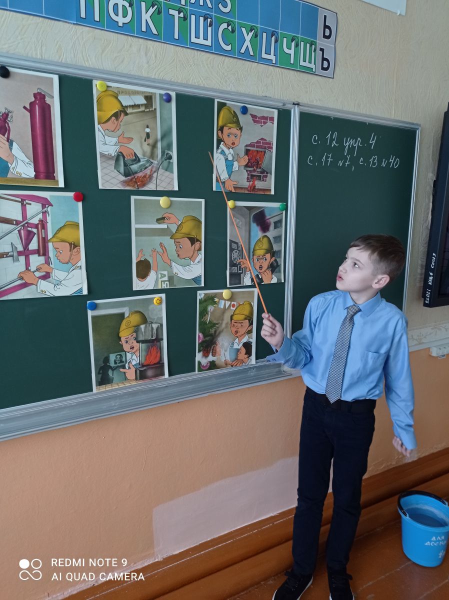 С целью ознакомления с основами, причинами пожаров, с первичными средствами пожаротушения; обучения соблюдению правил пожарной безопасности в 3 классе прошёл классный час «Пожарная безопасность». Учащиеся поделились знаниями с одноклассниками. -