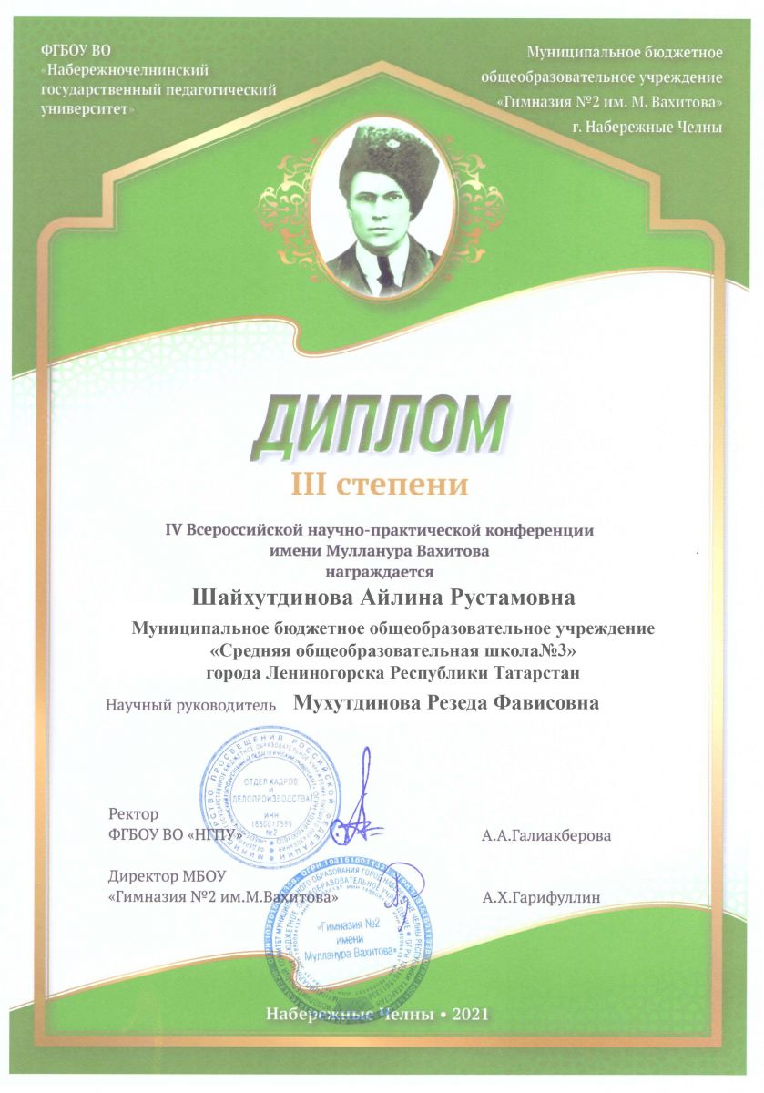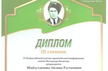 Телләрне, шул исәптән Татарстан Республикасының дәүләт телен өйрәнү өлкәсендә проблемалар һәм аларны хәл итү юлларын билгеләү максатыннан, М. Вахитов исемендәге IV Бөтенроссия фәнни-гамәли конференциясе үткәрелде. 9 нчы сыйныф укучысы Шәйхетдинова А. конференция эшендә катнашты һәм 3 нче урынны яулады.С целью обозначения проблем и путей их решения в сфере изучения языков, в том числе государственного языка Республики Татарстан, была проведена IV Всероссийская научно-практическая конференция им. М. Вахитова. Ученица 9 класса Шайхутдинова А. приняла участие в работе конференции и заняла 3 место.