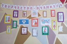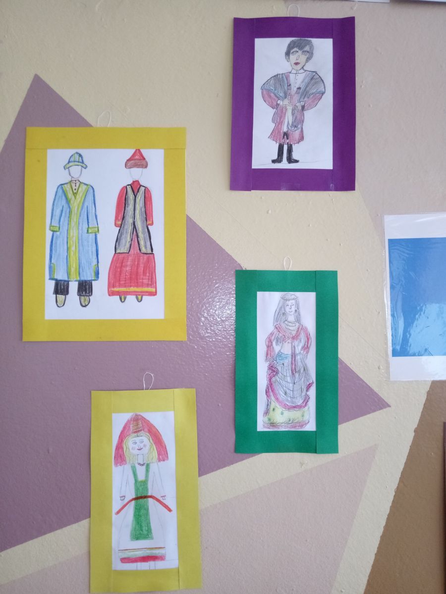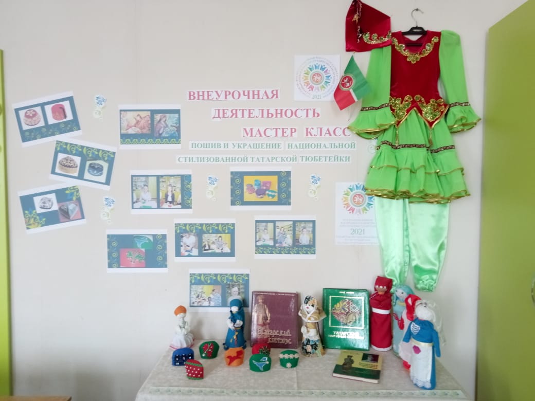 Технология кабинетында укучылар күргәзмәсе эшли. Традицион баш киемнәре 6 нчы сыйныф укучылары тарафыннан башкарылды. Технология укытучысы әлеге мастер - классны республика конференциясендә тәкъдим итте. Шулай ук 7-8 сыйныф укучылары төрле халыкларның костюмнарында курчаклар ясадылар. Чыганак булып мәктәп китапханәсеннән китаплар тора.В кабинете технологии представлена выставка учащихся. Традиционные головные уборы выполнены учащимися 6 классов. Учитель технологии представляла этот мастер - класс на республиканской конференции. Также учащимися 7 - 8 классов выполнены куклы в костюмах разных народов. Источниками являются книги из школьной библиотеки. -
