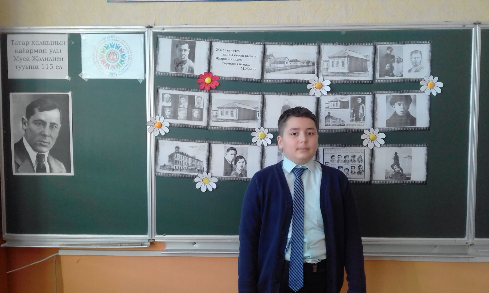 "Дөнья һәм дөнья әдәбияты күп кенә шагыйрьләрне белә, әмма үз исемен үлемсез әсәрләре белән мәңгеләштергән, үлеме дә үзе бер батырлык булган шагыйрь М.Җәлил кебекләр күп түгел. Менә алар: бөек Байрон, Венгриянең танылган халык шагыйре Петефи, герой Юлиус Фучик, ниһаять, М. Җәлил " - Азәрбайҗан шагыйре Әхмәт Вургун Җәлил турында әнә шулай акыллы һәм үтемле итеп әйтте.Укучыларда Муса Җәлилнең шигъриятенә һәм тормышына карата кызыксыну уяту максатыннан, аның тормышындагы фаҗигале сәхифәләрен билгеләп, аның тормышына карата мәхәббәт тәрбияләү, шигырь сөйләү күнекмәләрен һәм осталыкларын үстерү, лирик әсәрләрне анализлау максатыннан Муса Җәлил тормышына һәм иҗатына багышланган «Гомерем минем моңлы бер җыр иде, үлемем дә яңгырар җыр булып » дип исемләнгән шигырь бәйрәме үткәрелде.«Мир и мировая литература знают много поэтов, обессмертивших свои имена неувядаемой славой, но таких, как поэт-герой М.Джалиль, увековечивших свое имя и бессмертными творениями, и смертью, которая сама является подвигом, не так уж много. Вот они: Великий Байрон, славный народный поэт Венгрии Петефи, герой Юлиус Фучики, наконец М.Джалиль» - так мудро и проникновенно сказал о Джалиле азербайджанский поэт Ахмед Вургун.С целью пробуждения в учащихся интерес к поэзии и жизни Мусы Джалиля через его биографические данные, отметив трагические страницы его жизни; воспитать любовь к литературе; развития навыки и умения выразительного чтения стихотворения, анализировать лирические произведения был проведен праздник поэзии, посвященный жизни и творчеству Мусы Джалиля: «Жизнь моя песней звенела в народе, смерть моя песней борьбы прозвучит! » -
