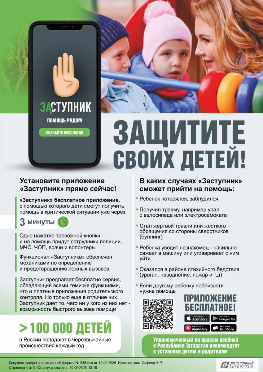Уважаемые родители!Предлагаем Вам бесплатно установить мобильное приложение “Заступник”, которое, в отличие от многочисленных приложений родительского контроля, позволяет ребенку не только послать сигнал бедствия в экстренной ситуации, но и, что более важно, получить помощь экстренных служб и волонтеров в невероятно короткий срок - всего от трёх минут.Название школы: МУНИЦИПАЛЬНОЕ БЮДЖЕТНОЕ ОБЩЕОБРАЗОВАТЕЛЬНОЕ УЧРЕЖДЕНИЕ "СРЕДНЯЯ ОБЩЕОБРАЗОВАТЕЛЬНАЯ ШКОЛА №3 Г.ЛЕНИНОГОРСКА" МУНИЦИПАЛЬНОГО ОБРАЗОВАНИЯ "ЛЕНИНОГОРСКИЙ МУНИЦИПАЛЬНЫЙ РАЙОН" РЕСПУБЛИКИ ТАТАРСТАНАдрес школы: Респ Татарстан, г Лениногорск, ул Губкина, д 59Установите бесплатно мобильное приложение “Заступник” прямо сейчас!Ссылки на скачивание.Взрослое приложениеДетское приложениеЗа последний год работы некоммерческого социального проекта “Заступник”, помощь получили более 4500 детей и подростков по всей стране!Посмотрите сюжет Первого канала об этом :vk.cc/cMbk6LКак Вы знаете, “Заступник” работает и в нашем регионе. Чтобы как можно большее число детей оказалось под защитой, необходимо максимальное распространение приложения и поддержка родительского сообщества! Давайте вместе сделаем наш город безопасным для наших детей!Также “Заступник” можно скачать в Rustore и AppGallery.Обязательно посмотрите эти 2 видео до конца. Они подробно описывают как работает “Заступник” (! Для просмотра предварительно нужно вступить в сообщество по ссылке: https://vk.com/zastupnik_app)Видеопрезентация проекта:vk.cc/cMbkafВидеоинструкция как работает “Заступник:https://vk.cc/cMbkgk”Заступник” получил множество премий и в том числе признан лучшим мобильным приложением Рунета-2023.Еще больше информации о проекте «Заступник» на нашем сайтеИ в телеграмм- канале:Если у Вас возникли вопросы по приложению «Заступник», то специально для Вас круглосуточно работает служба заботы в Whatsapp: +7 (963) 932-55-45.jpg)