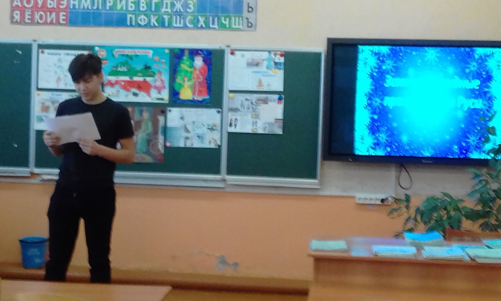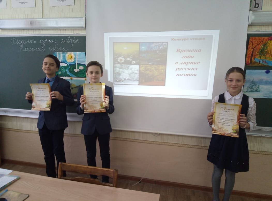 Рус теле һәм әдәбияты атналыгы кысаларында 27 нче гыйнварда 6 сыйныфта (укытучы Г.Я.Маслакова) ” Рус шагыйрьләре иҗатында ел фасыллары “дип аталган шигырь укучылар конкурсы үтте. Балалар яраткан әдипләренең рус табигатенә багышланган әсәрләрен сөйләделәр. Моннан тыш, алар билгеле пейзажист- рәссамнарның эшләре белән дә таныштылар. Конкурстан соң 3 җиңүче билгеләнде .Продолжается Неделя русского языка и литературы. 27 января в 6 классе (учитель Маслакова Г. Я.) прошел конкурс чтецов "Времена года в лирике русских поэтов". Ребята читали стихи любимых поэтов, посвящённые красоте русской природы в разное время года. Кроме этого, они познакомились с работами известных художников-пейзажистов. По завершении конкурса определились три победителя.