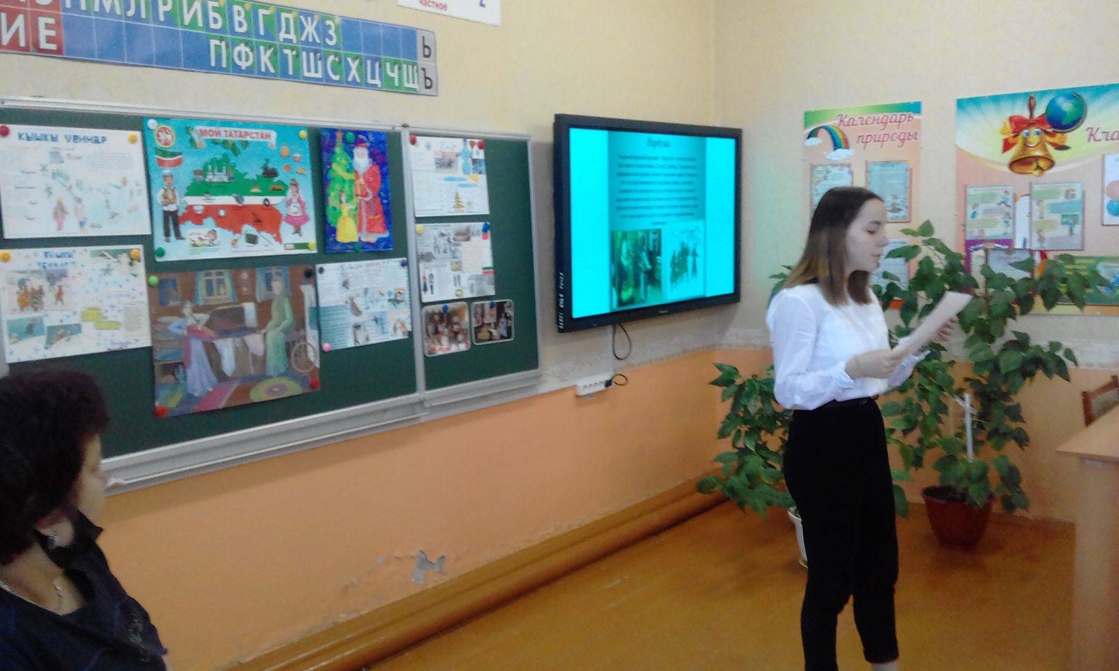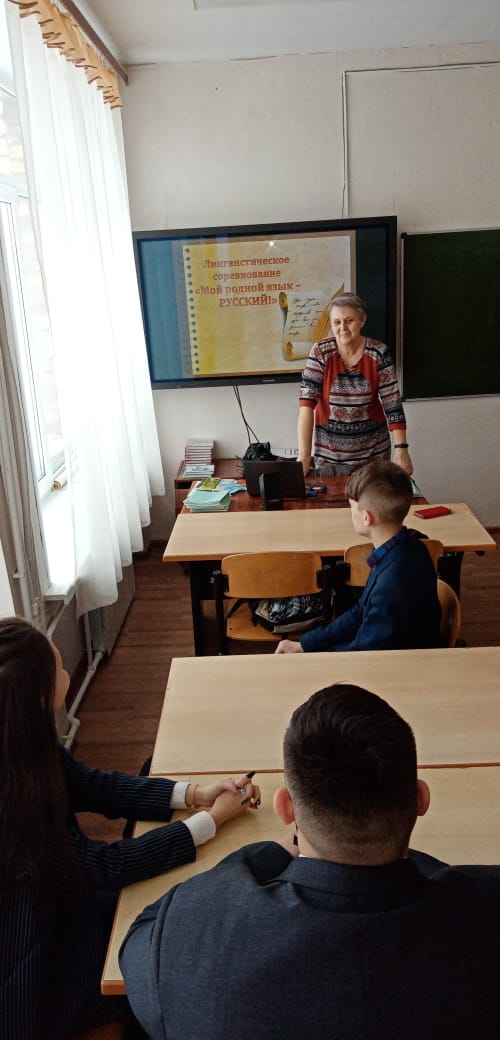 Туган телләр айлыгы кысаларында 8 нче сыйныфта укытучы Журавлева М.П. «Минем Туган телем – рус теле» дигән лингвистик бәйге үткәрде. Барлык биремнәр дә укучыларны көндәлек тормышта һәм уку эшчәнлегендә аралашу чарасы буларак рус телен белүгә ярдәм итте. Әлеге чара туган телгә хөрмәт тәрбияли, телгә, мәдәният күренешләренә, фәнгә карата кызыксынуны арттыра.В рамках месячника родных языков в 8 классе учителем Журавлевой М.П. было проведено лингвистическое соревнование «Мой родной язык – русский», в ходе которого две команды показывали свои знания по родному русскому языку. Все задания способствовали овладению обучающимися русским языком как средством общения в повседневной жизни и учебной деятельности. Данное мероприятие воспитывает уважение к родному языку, повышает интерес к языку как явлению культуры, к самому предмету. -