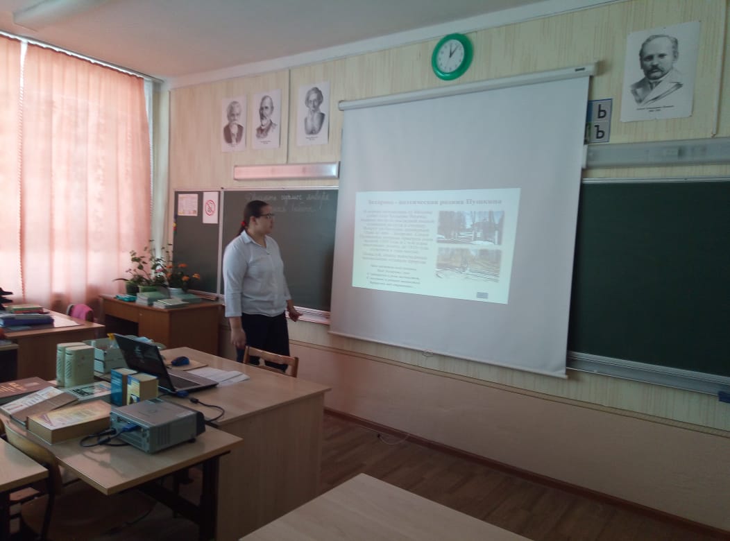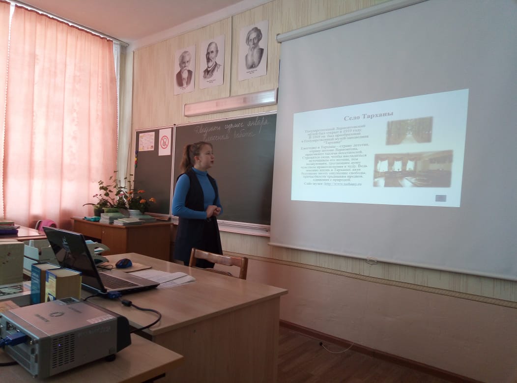Рус теле hәм әдәбияты атналыгы кысаларында 29 нче гыйнварда 8 нче сыйныфта (укытучы Г.Я.Маслакова) «Россиянең әдәби урыннары” дип аталган дәрес-презентация үтте. Укучылар танылган рус әдипләрнең исемнәре белән бәйле урыннар турында сойләделәр.В рамках Недели русского языка и литературы 29 января в 8 классе (учитель Маслакова Г. Я.) прошёл урок-презентация на тему "Литературные места России". Учащиеся рассказали о местах, которые связаны с именами великих русских писателей. -