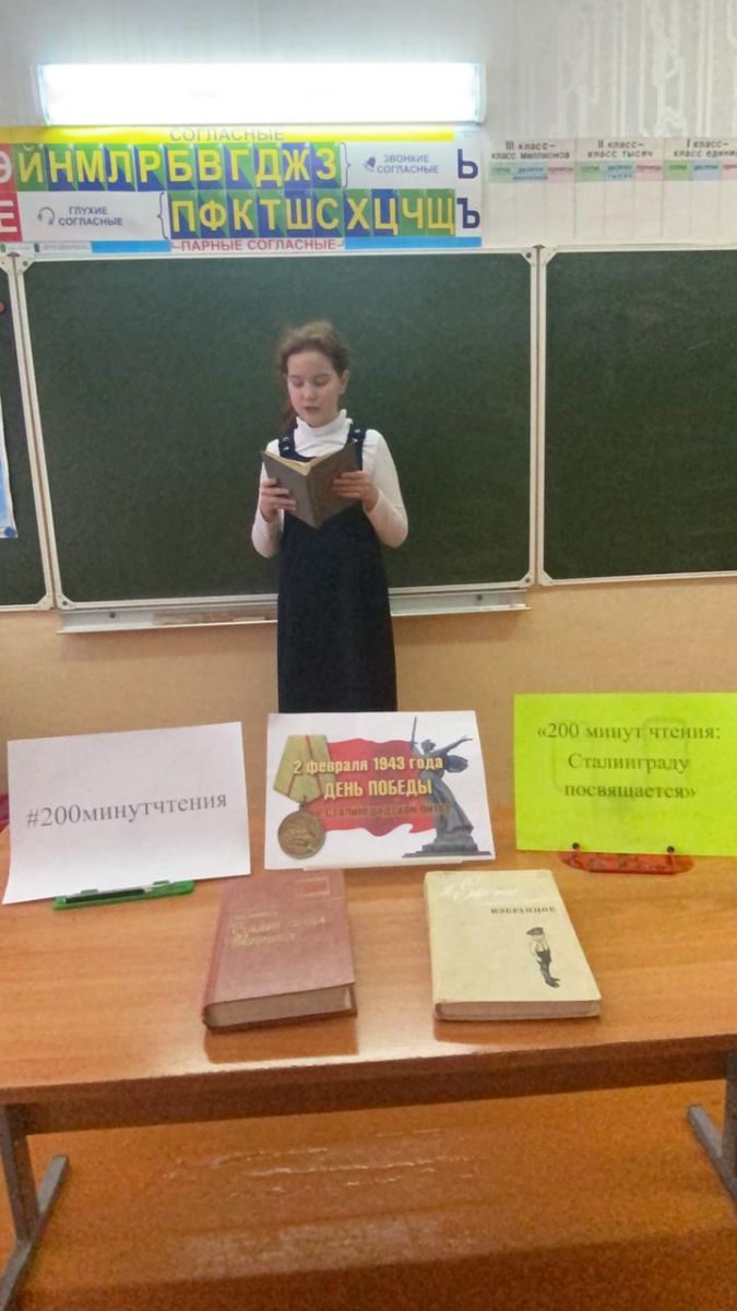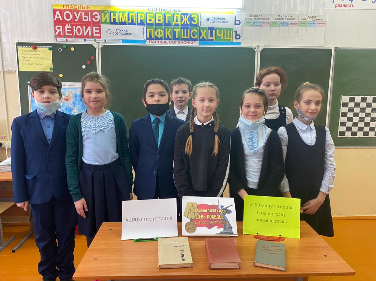 Библиотекарь ЦБ филиала №2 провела беседу в 4 классе на тему: Час истории «Сталинградская битва», учащиеся приняли активное участие в акции 200 минут чтения «Сталинграду посвящается» -