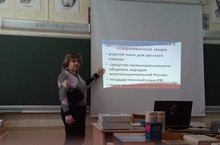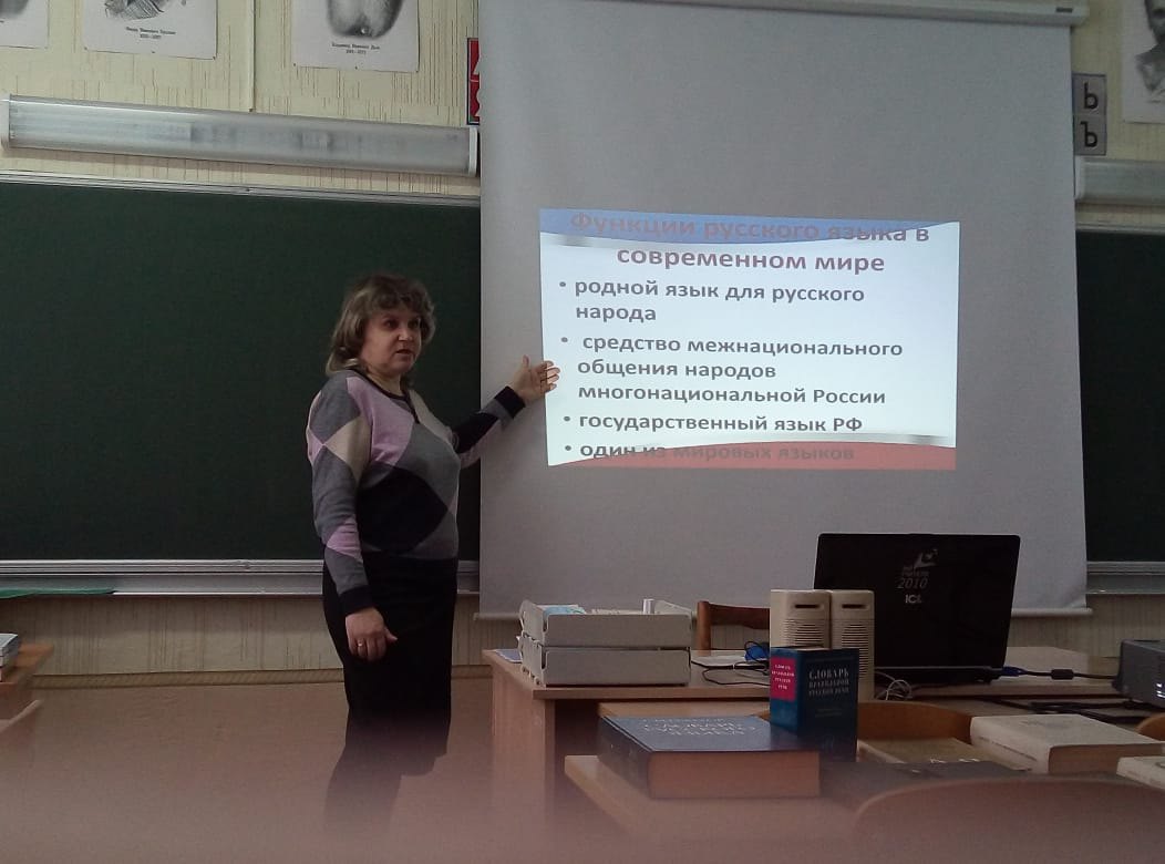Рус теле һәм әдәбияты атналыгы башланган беренче көнне, 25 енче гыйнварда, 6- 9 сыйныфларда “ Бүгенге дөньяда рус теле” темасына дәресләр уткәрелде (ккытучы Г.Я.Маслакова). Укучылар рус теленең төп функцияләре, дөньядагы урыны турында сөйләштеләр. Моннан тыш иң сирәк очрый торган телләр белән дә таныштылар. Дәрес азагында туган телне саклау - ул халыкның мәдәниятын саклау дигән фикергә килделәр.25 января началась Неделя русского языка и литературы. В первый день Недели в 6-9 классах прошёл урок на тему "Русский язык в современном мире". В ходе урока ребята говорили об основных функциях русского языка, о его значении в современном мире. Кроме этого, они познакомились с самыми редкими и необычными языками в мире. В конце урока все ребята пришли к единому мнению, что сохранение родного языка - это сохранение культуры и самобытности народа. -
