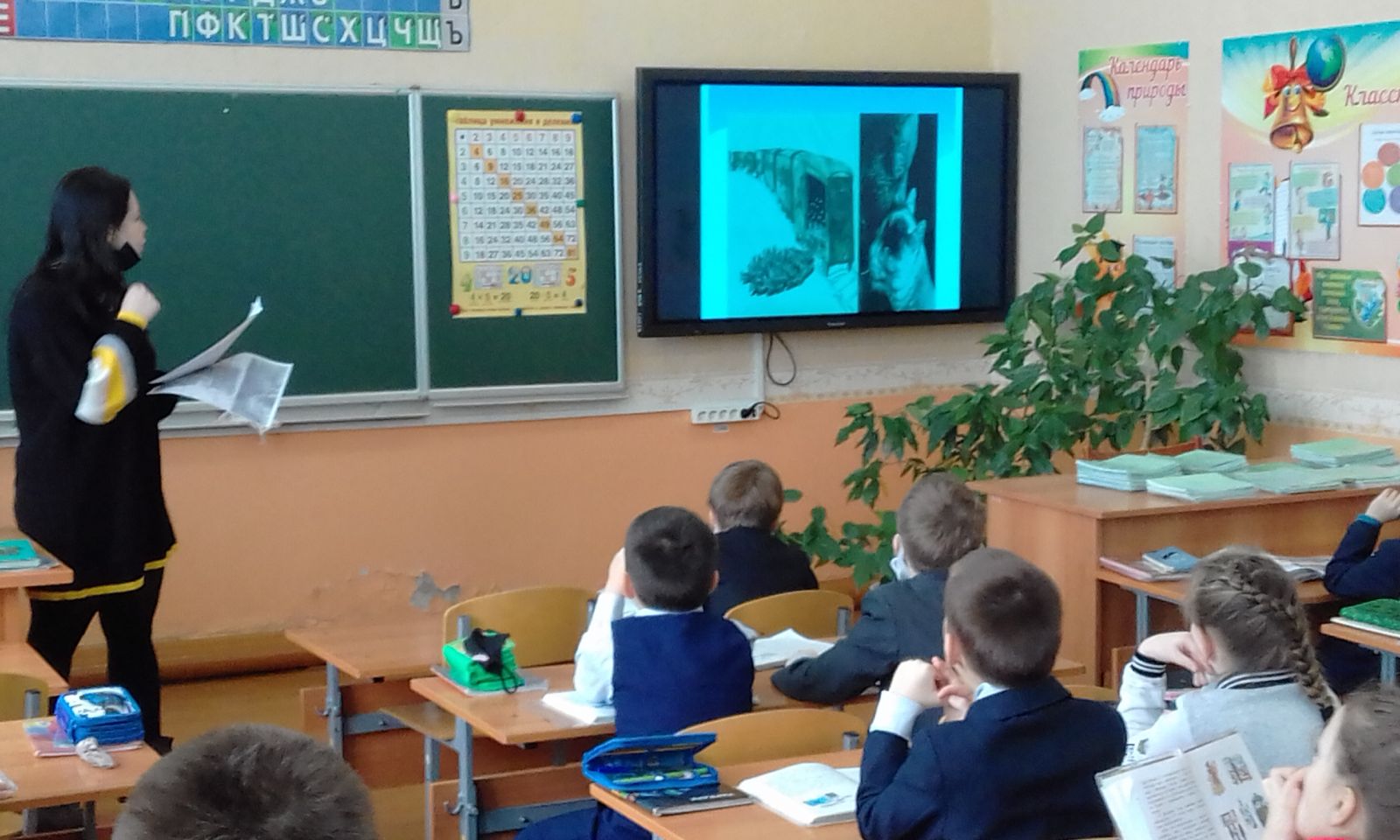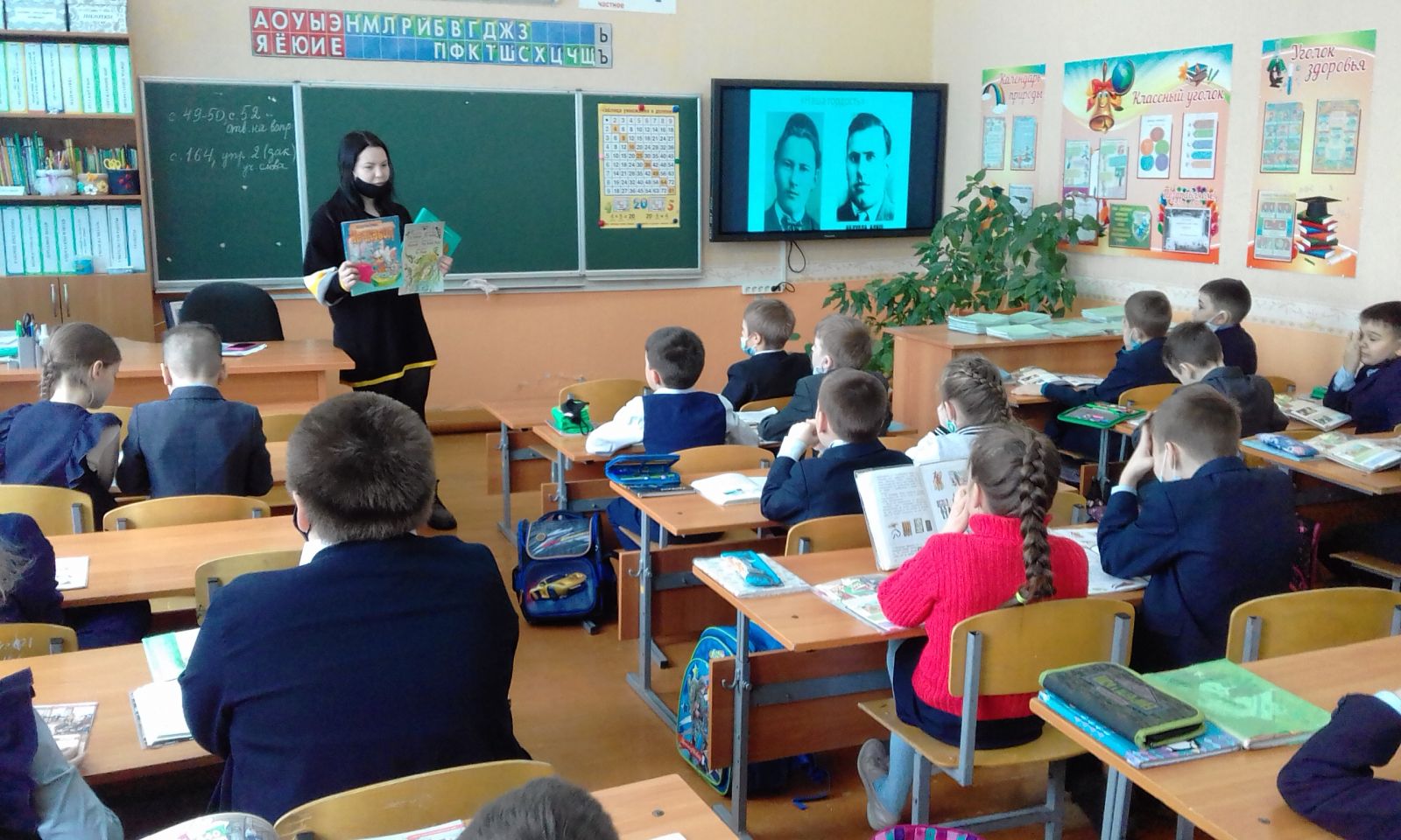 23 гыйнвар көнне, Халыкара туган тел көненә багышланган айлык кысаларында, укучыларны Татарстан язучыларының әдәби иҗаты белән таныштыру, туган якка мәхәббәт тәрбияләү максатыннан, район үзәк китапханәсенең 2 нче филиалы китапханәчесе 2 нче сыйныфта "Татарстанның күренекле язучылары – безнең горурлыгыбыз" дип исемләнгән тематик чара үткәрде»23 января в рамках проведения месячника, посвященного международному дню родного языка, в целях знакомства учащихся с литературным творчеством писателей Татарстана, воспитания чувства любви к родному краю, библиотекарь филиала №2 ЦРБ во 2 классе провела тематическое мероприятие «Выдающиеся писатели Татарстана – наша гордость» -