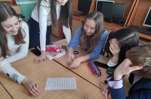 Сегодня девятиклассники приняли участие в игре "Сто к одному", в которой угадывали наиболее популярные ответы на вопросы из области физики. Цвет дня - зеленый. -