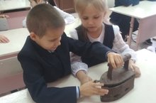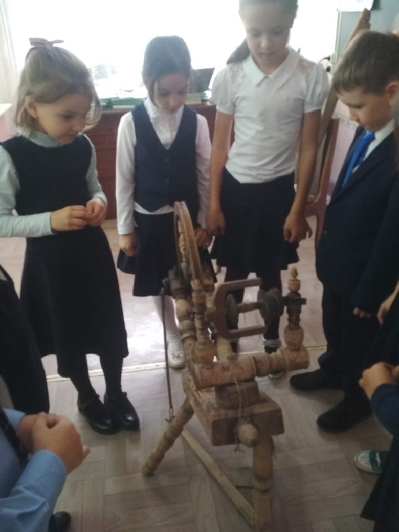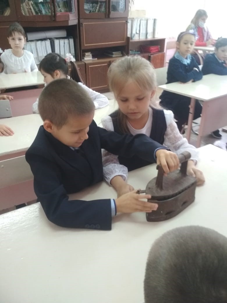 Члены музейного кружка "Память" учащиеся 8 класса, ознакомили учащихся 1 класса с некоторыми экспонатами музея. Первоклассники были восхищены возможностью прикоснуться к старинным вещам. -