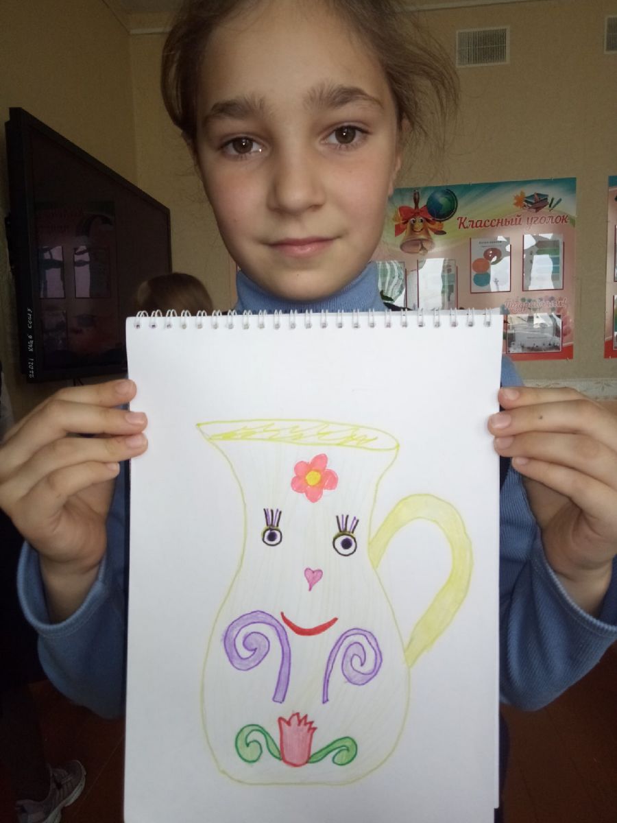 Сегодня во втором классе прошел урок внеурочной деятельности под руководством учителя ИЗО Зариповой А.Г.В современных условиях уровень общего образования определяется не только общеобразовательной подготовкой, получаемой школьником на уроке, но и возможностью учащихся использовать дополнительное образование. В школе, на сегодняшний день, созданы условия для развития индивидуальности ребёнка, для занятий учащихся творчеством во внеурочной деятельности.Рабочая программа «Я — художник» разработана учителем для занятий с учащимися в соответствии с новыми требованиями ФГОС.Ребятам была зачитана сказка «История старого кувшина». Цель: Развивать художественный вкус, фантазию, изобретательность, пространственное воображение. Совершенствовать эмоционально-образное восприятие произведений искусства и окружающего мира.