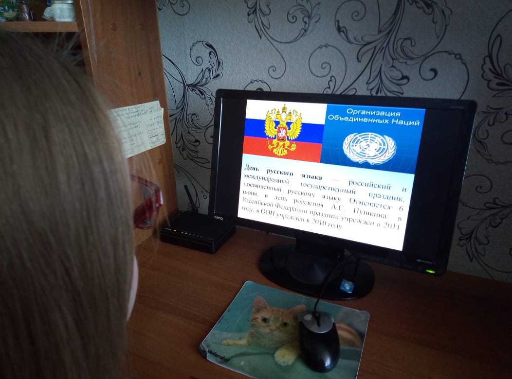 Учащиеся 6 и 8 классов (учитель Маслакова Г. Я.) посмотрели видеофильм, посвящённый празднованию Дня русского языка в России. Кроме этого, в режиме онлайн приняли участие в викторине "А знаешь ли ты...?", в которой узнали интересные факты о русском языке.