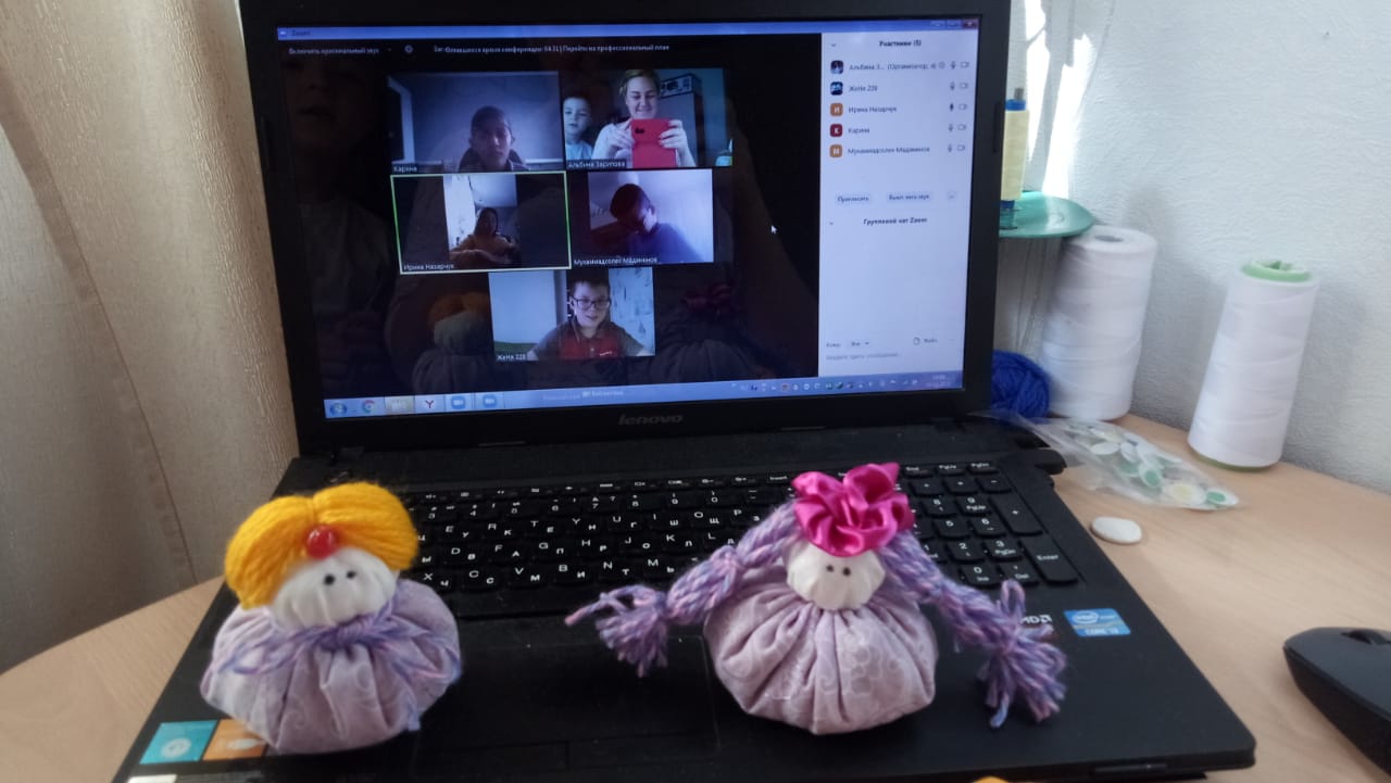Ребята кружка "Фантазеры" (руководитель Зарипова А.Г.) собрались на дистанционное занятие, на котором весело и творчески подошли к делу - они изготовили куклу "Зерновушку".