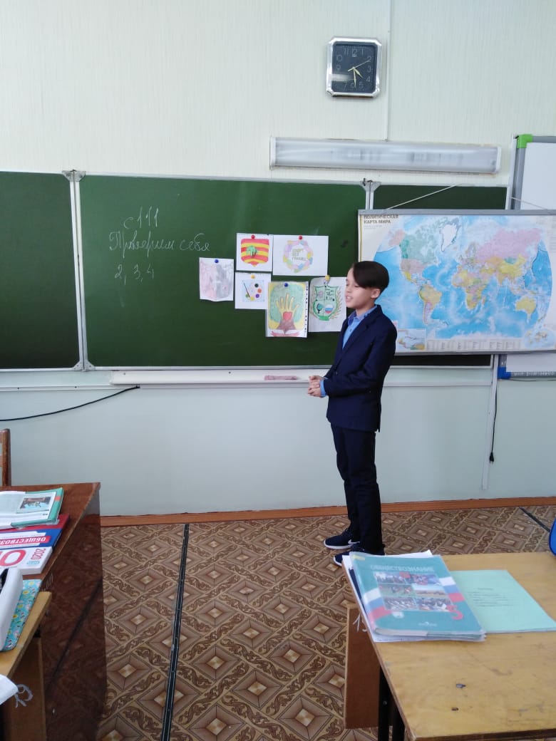 В 5 классе прошел конкурс Гербов. Учащиеся нарисовали личный герб или герб класса. Каждый представил и объяснил свой рисунок.