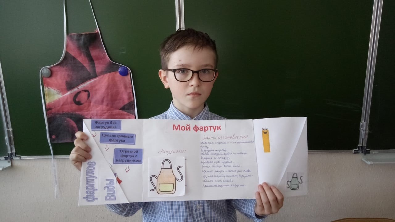 В пятом классе ребята защищали проект по технологии на тему "Фартук". Учащиеся изготовили лэпбуки своими руками. Рассказывали об истории происхождения фартуков, о тканях и видах фартуков, их технологии обработки. -