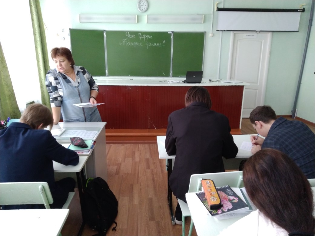 В школе проходят уроки Цифры.На Уроке школьники познакомились с понятием большие данные, их источниками, сферами использования и инструментами анализа. Участники Урока — с 5-го по 9-ый класс нашли в доме и на улице виртуального города объекты, собирающие данные, и узнали, как эти данные можно использовать. Учащиеся 8-9 классов проанализировали отрывок переписки в чате, чтобы понять, какие интересы объединяют ребят.