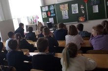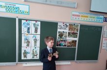 В третьем классе в библиотеке прошел урок мужества, это был совместный урок учителя Камаловой Р. З. и библиотекаря.Присутствующие ученики с интересом и вниманием послушали выступление библиотекаря. Прослушали запись Левитана, о том, как началась война. На уроке послушали стихи и песни о войне «Журавль», «Сыновья уходят в бой». Восторг вызвал видеофрагмент «22 июня», где было рассказано о временах войны. Также прошла небольшая беседа, где дети рассказывали о подвигах своих прадедов и прабабушек. Торжественно и печально прошла минута молчания. -