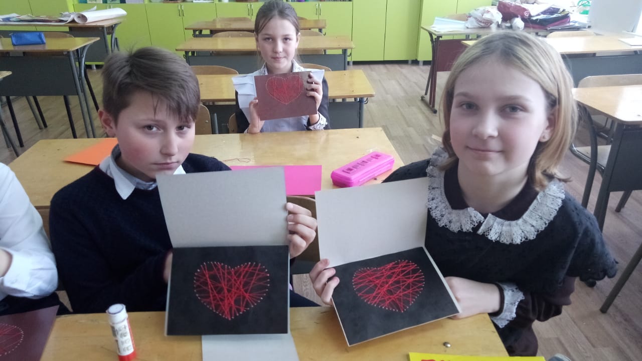 День Святого Валентина празднуется 14 февраля во многих странах мира. В этот день любимым и дорогим людям принято дарить цветы, конфеты, игрушки, воздушные шарики и особые открытки с сердечками, в которых написаны стихи, признания в любви или просто приятные пожелания.Вот и учащиеся нашей школы приняли участие в мастер – классе Зариповой А. Г. по изготовлению открытки - Валентинки своими руками для любимых и родных людей. Все четко выполняли задания. Поэтому у всех получилась чудесная открытка с секретом, где ребята, для своих мам или других близких напишут самые теплые пожелания. -