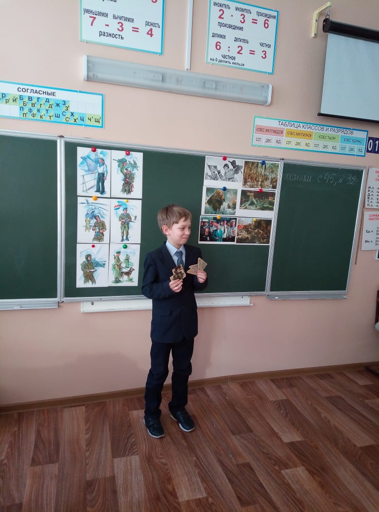 В школе прошла акция «Солдатский альбом», посвященная Дню защитника Отечества. В рамках акции школьники приносили в классы предметы армейской жизни членов своих семей.Ребята с гордостью рассказывали о подвигах своих родственников, о службе своих пап и братьев. Дети смогли полистать военные альбомы. Отцы и старшие братья школьников передали для мероприятия очень дорогие и памятные для них вещи. -