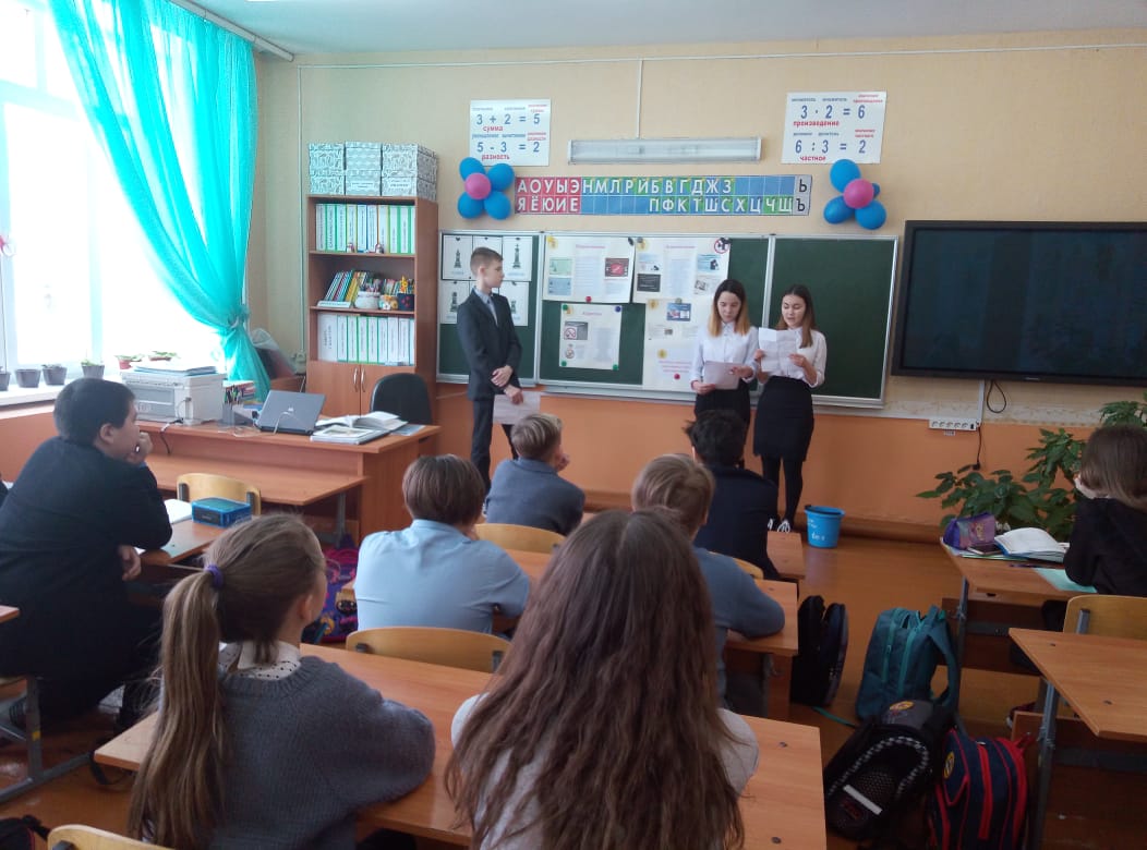 Учащиеся 8 класса, члены отряда "Форпост" (руководитель Маслакова Г. Я.), провели беседу с учениками 5, 6, 7 классов на тему "Вредные привычки - первый шаг к преступлению". -