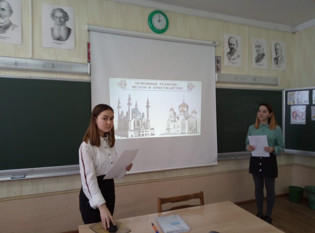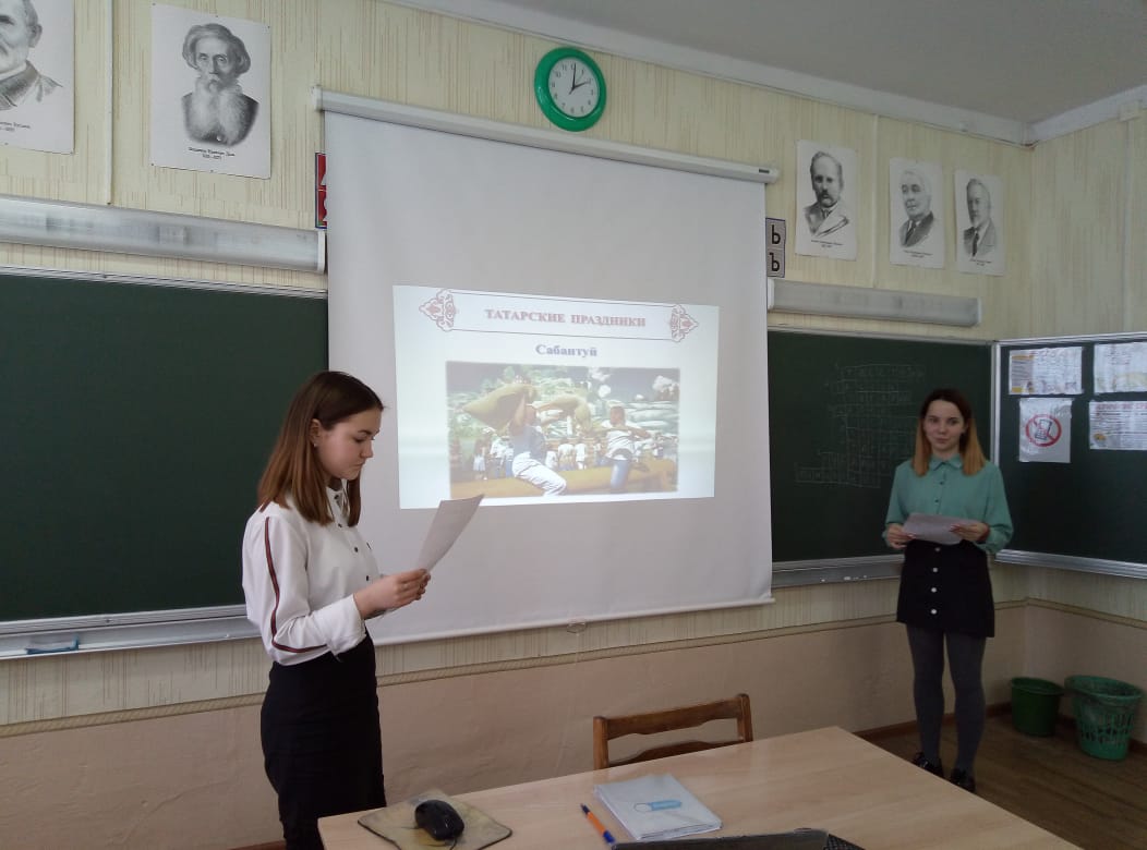 23 января в 8 классе прошел классный час на тему «История моей республики», приуроченный к 100-летию образования ТАССР. Учащиеся Раджапова А. и Лукьянова Н. рассказали своим одноклассникам об истории становления нашей республики, ее месте на географической карте России. В своем выступлении они выделили несколько основных этапов в развитии ТАССР:- 20-40 годы XX века;- военные годы 1941-1945 гг;- 50-80 годы XX века;- образование Республики Татарстан в 90-ые годы;- современный Татарстан.Девочки составили кроссворд на знание основных татарских праздников, национальных костюмов, блюд татарской кухни. -
