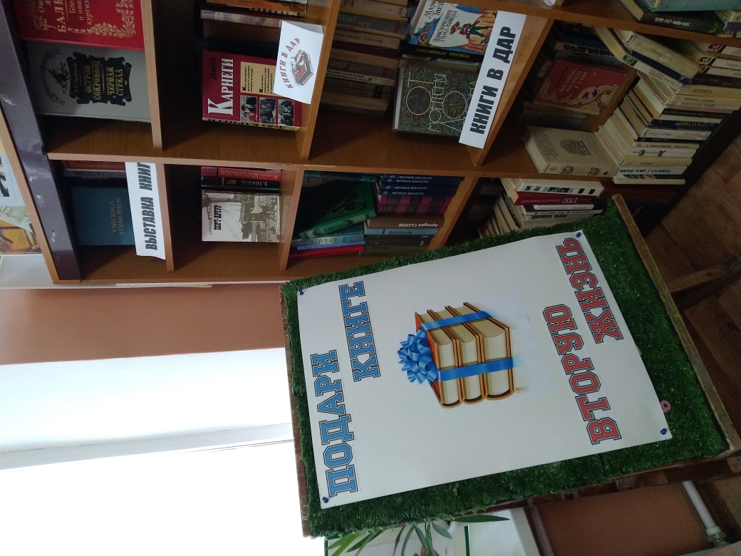 На торце одного из стеллажей абонемента школьной библиотеки висит табличка: «Книги в дар библиотеке». Это более 100 книг, подаренные нашей библиотеке с. Большая часть ‒ это книги русской классики, зарубежная литература и детские книги.
