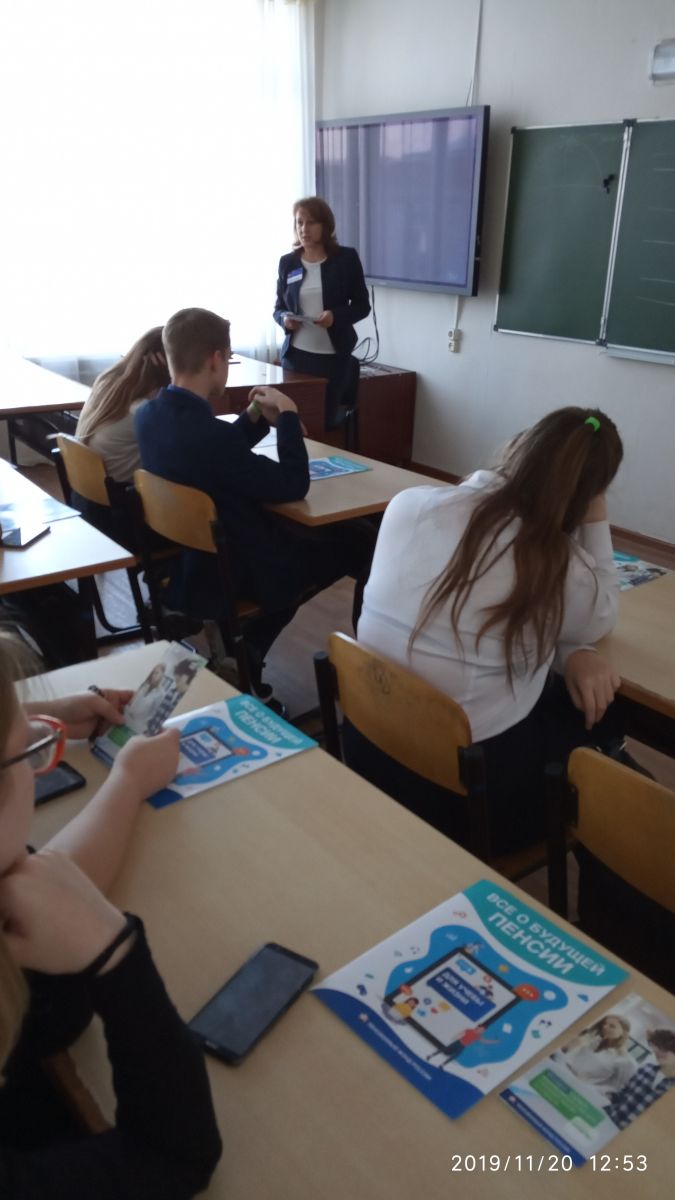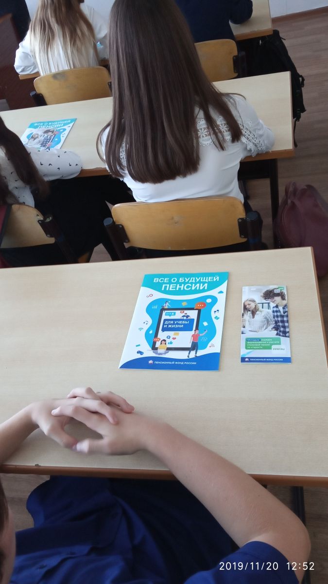 20 ноября в нашей школе для учащихся 9 классов прошел урок по пенсионной грамотности в рамках всероссийской акции «Единый день пенсионной грамотности» с приглашением зам.начальника Управления ПФР Сираевой Г.Г., которая в ходе лекции рассказала школьникам о том, что такое СНИЛС и для чего он необходим, из чего складывается будущая пенсия, как «серая» зарплата, нелегальное трудоустройство отразятся на размере выплат, как декретный отпуск, служба в армии, уход за престарелыми родственниками отразятся на стаже.