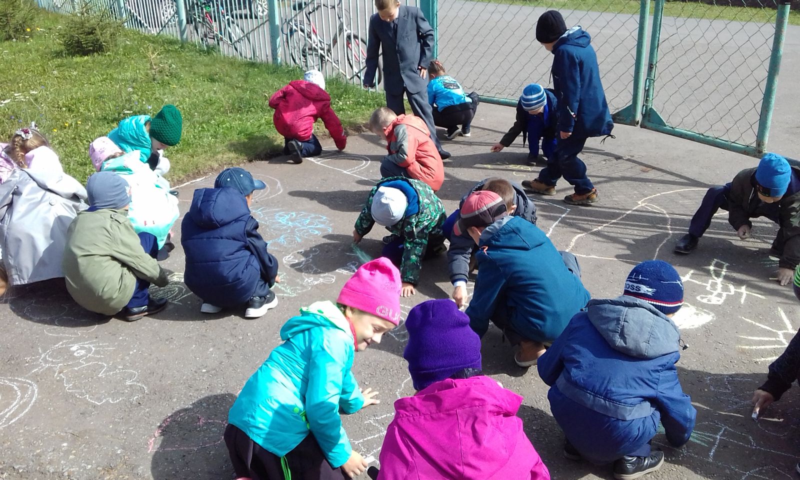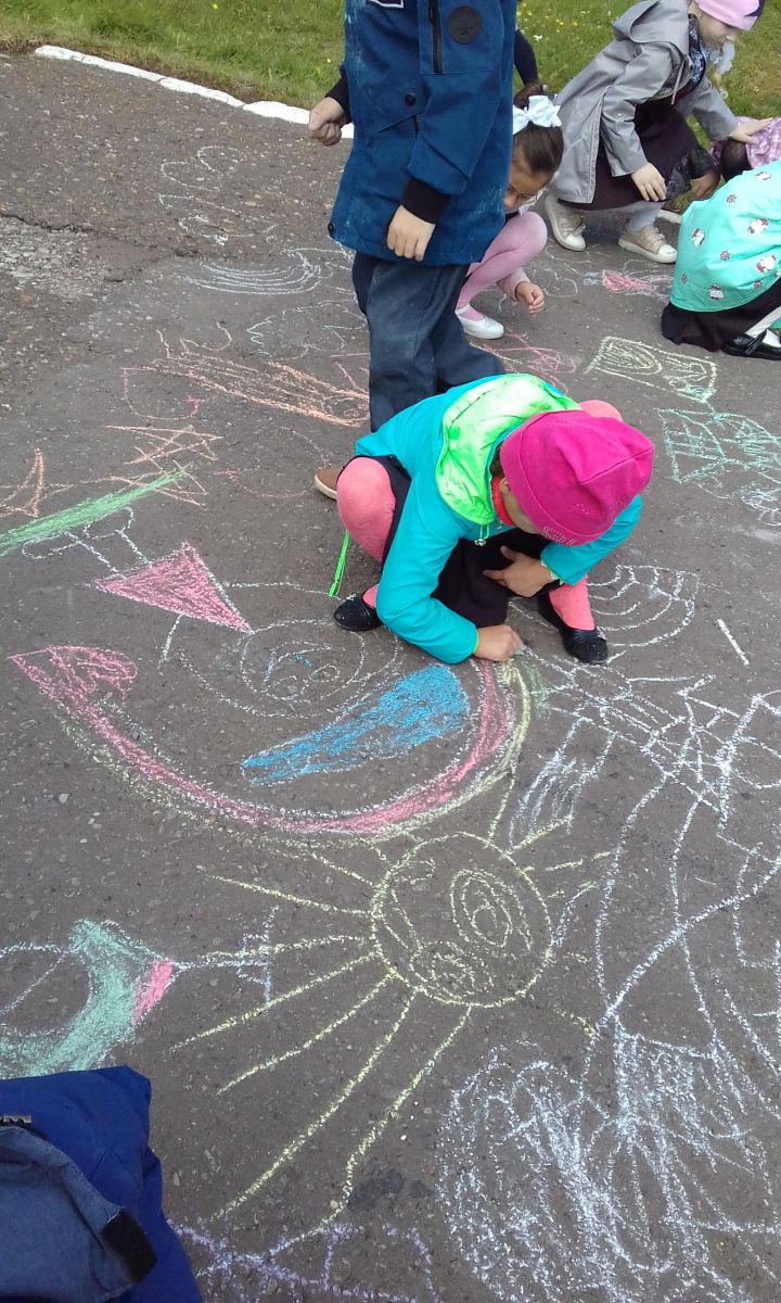 Мы рисуем на асфальтеМир, в котором мы живём.Разноцветными мелкамиСмело линии ведём!Нарисуем в небе солнце,Птиц парящих над землёй.На цветочной, на полянеМы построим большой дом.Нарисуем ребятишекИ девчонок, и мальчишек.Чебурашка забегал,Всем цветочки раздавал!День особенный сегодня,Терроризму скажем – НЕТ!Мы не зря сегодня сами,Рисовали ЖИЗНЬ БЕЗ БЕД! -