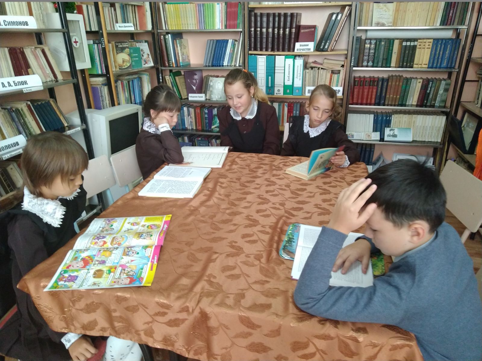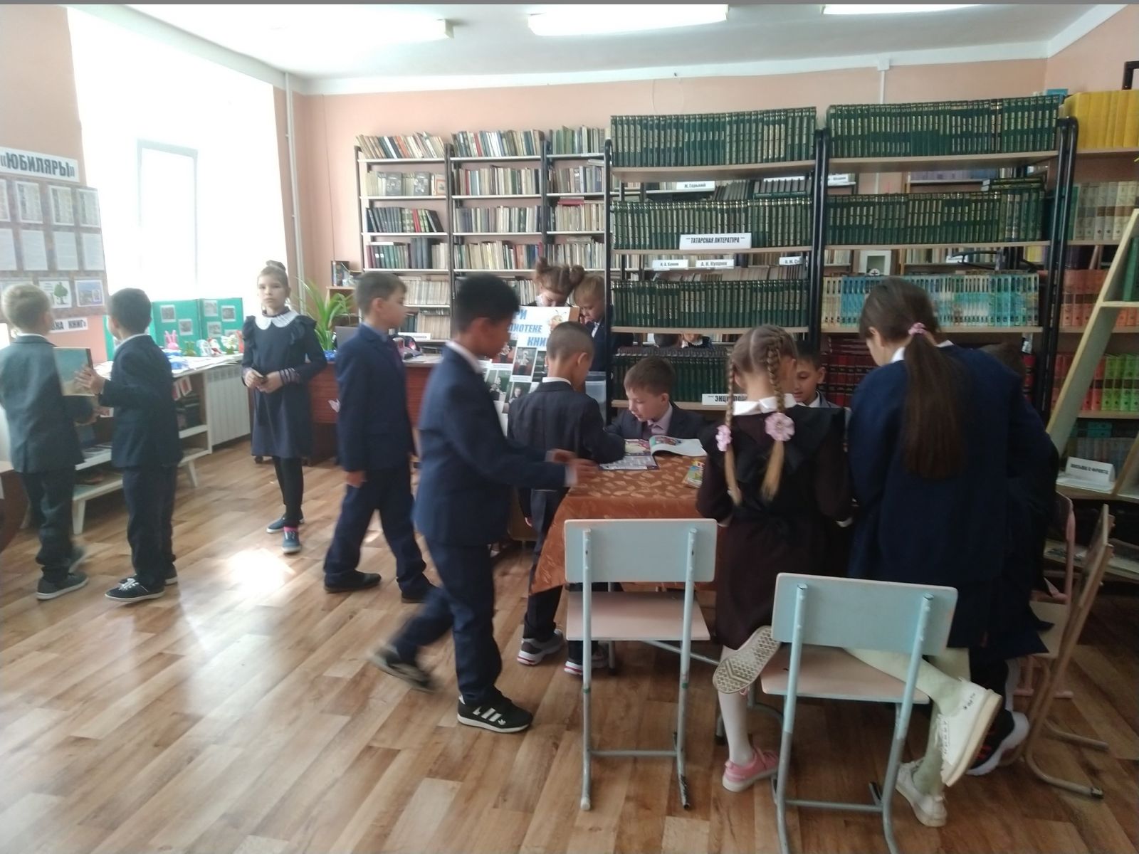 Библиотекарь Андреева Л. М. совместно с учителями школы провела беседу-экскурсию по школьной библиотеке. Ребята побывали в удивительном городе, где вместо улиц — ряды книжных стеллажей, вместо этажей — книжные полки, дома — это тома книг. А у каждого дома своё название. Дети познакомились с жильцами города — литературными героями. Библиотекарь рассказала, какие книги есть на абонементе, про поступление новых детских книг и журналов, что все они находятся по отделам: животные, космос, техника, история и др. Дети познакомились с правилами пользования библиотекой. Так же познакомились с зверятами с живого уголка. Получили много впечатлений. По окончании экскурсии каждый ребенок, выбрал для себя книжки на домашнее пользование.