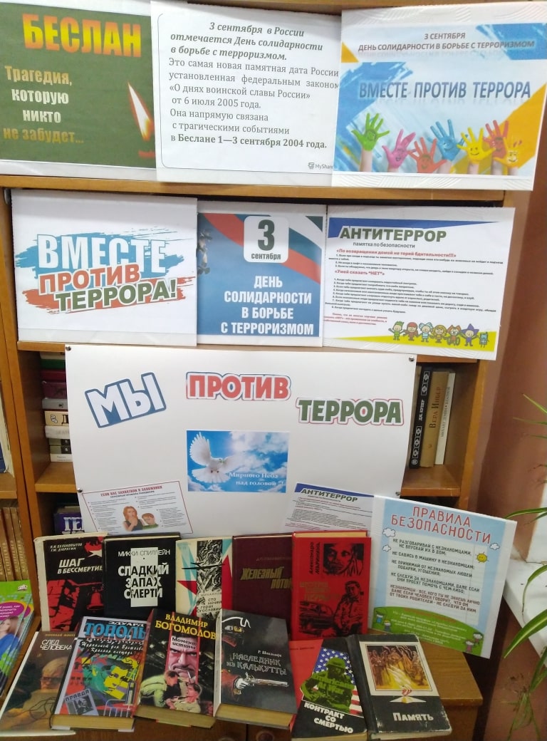 Тематическая книжно – иллюстрационная выставка на тему "Борьба с терроризмом касается каждого!". 03.09.2019