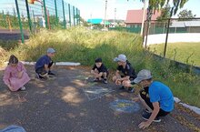 Сегодня в лагере провели конкурс рисунков на асфальте «Безопасное электричество». Основная идея – воспитание культуры безопасного поведения вблизи объектов электроэнергетики и обращения с ресурсом в быту.