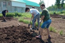 Продолжается работа пришкольного лагеря труда и отдыха. Ребята готовят грядки для посадочного материала, девочки облагораживают пришкольную территорию.