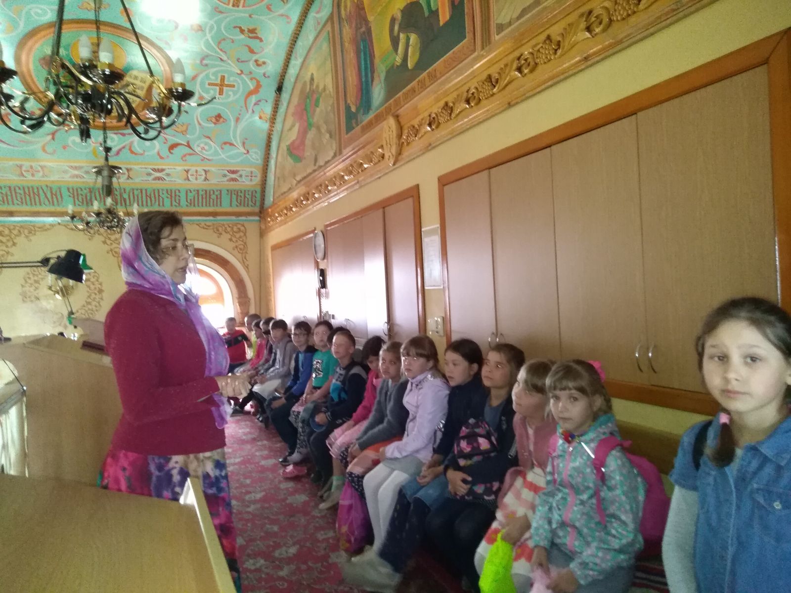 14.06.2019 года состоялась экскурсия в православный храм нашего города. Педагог из воскресной школы познакомила мальчиков и девочек со строением храма, рассказала об особо почитаемых святых, показала мощевик, в котором находятся мощи святых и камни с почитаемых мест Святой земли.