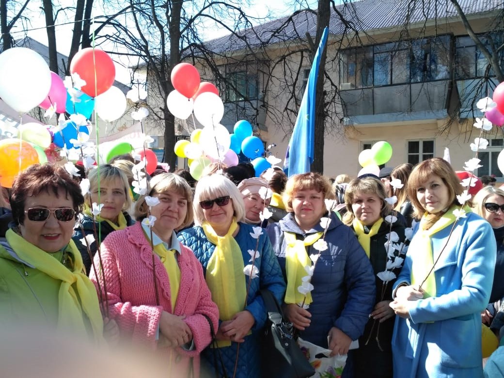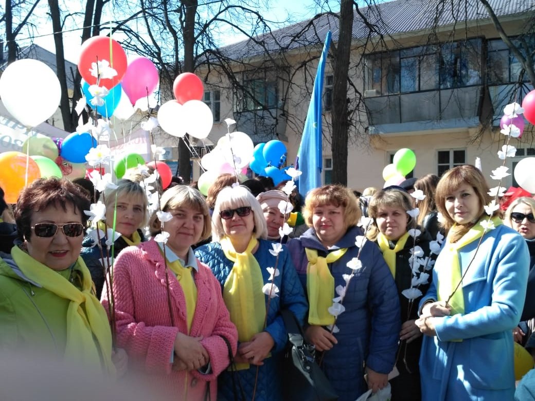 Ведь 1 Мая! Так с праздником вас!Коллектив МБОУ "СОШ №3" на городской демонстрации. -