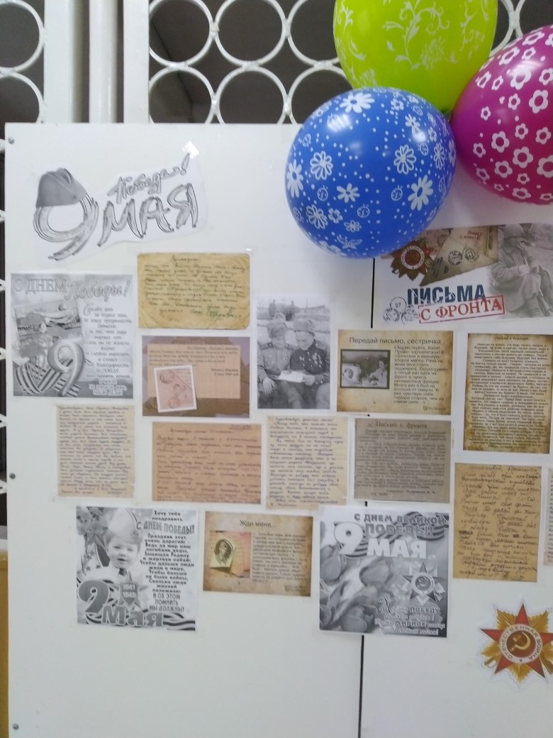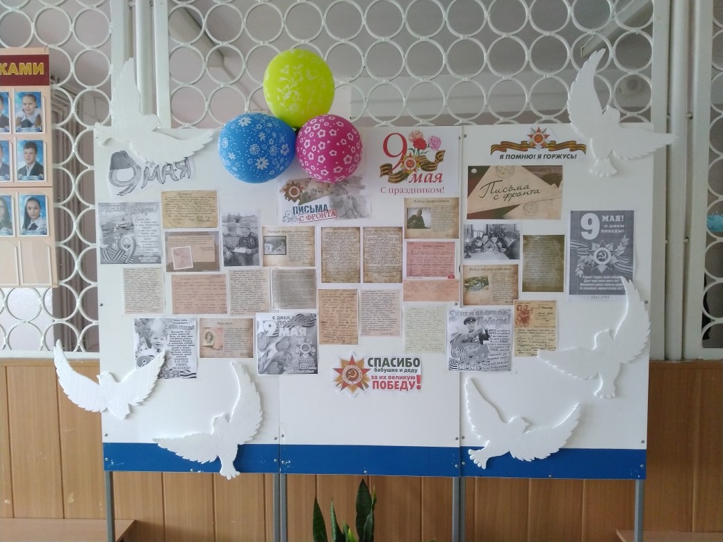 Наши деды и прадеды завоевали Великую Победу своей кровью. Они отдали свои жизни, чтобы мы жили в свободной стране.Помимо писем в школьной библиотеке была представлена выставка, посвящённая Великой Отечественной войне.Память о той дорогой цене, что заплатили наши прадеды, еще жива. И ее нужно поддерживать. все должны помнить о том, что мирное небо над их головами заработано множеством поколений защитников Отечества, их потом и кровью. Но эти неизвестные герои – такие же люди как мы. Об этом свидетельствуют реальные письма участников Великой Отечественной войны.Наши дети не проходили мимо. С гордостью подходили и читали письма представленные на доске памяти. Педагог - организатор и библиотекарь Андреева Л. М. -