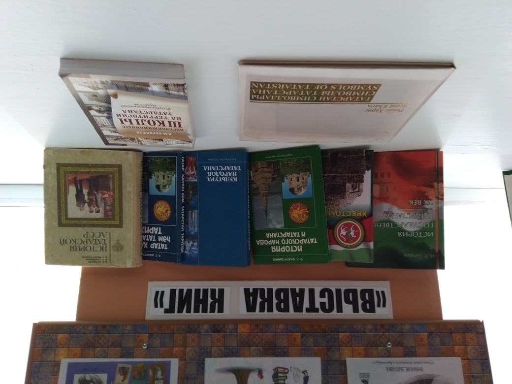 «Все о Татарстане» - так называется викторина, посвященная к 100-летию образования Татарской АССР. Викторина была проведена для детей с целью углубления и повышения знаний об истории Татарстана и его народа. В сценарий этого мероприятия были включены игры, конкурсы, вопросы, логические задания про Татарстан. Работала книжная выставка «Туган ягым Татарстан», в которой представлены книги о Татарстане, около которой проводятся обзоры и беседы со школьниками. Работа ведется постоянно.