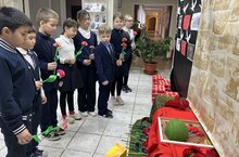 - Торжественное возложение. Самый волнительный момент— когда дети подходили к мемориальной доске и оставляли у её подножия свои красные гвоздики. Каждый цветок — это детское «спасибо» за мирное небо, за возможность учиться, мечтать и жить.