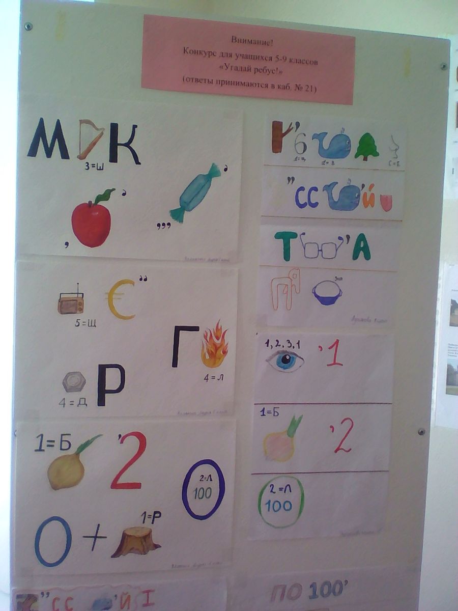 Одними из самых активных участников Недели русского языка и литературы оказались учащиеся 5 и 6 классов. Учащиеся 5 класса подготовили подборку самых интересных, зачастую малоизвестных, сведений о русском языке. Учащиеся 6 класса решили провести конкурс «Угадай ребус!» Все работы ребята красочно оформили на выставочном стенде.