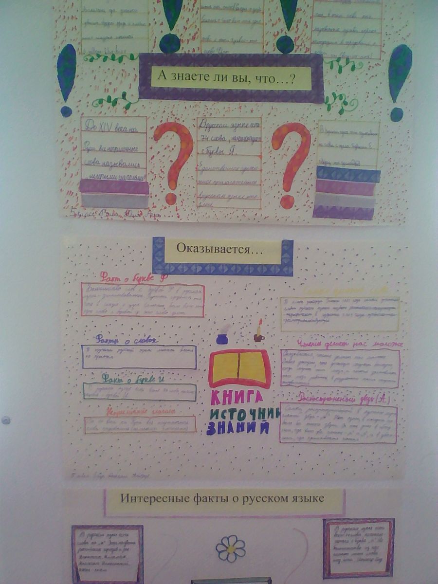 На открытии Недели учащиеся 5-9 классов познакомились с планом предстоящих мероприятий. Все уроки русского языка начались с небольшой информации, которую подготовили учащиеся 5 класса, на тему «Интересные факты о русском языке»