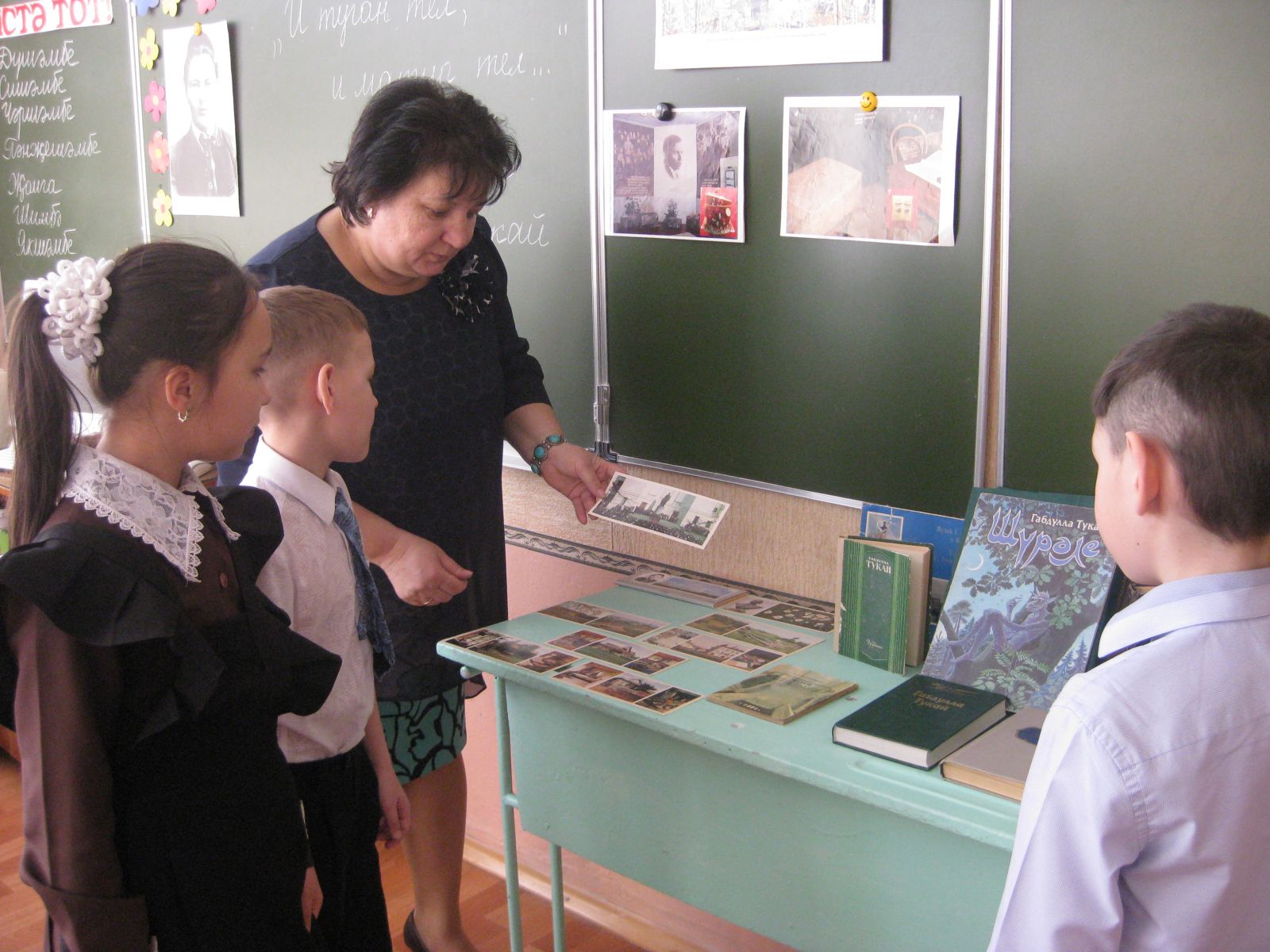 Бүген мәктәбебездә “И туган тел, и матур тел...” дип исемләнгән әдәби –музыкаль кичә узды. Кичәдә укучылар бөек шагыйребезнең китаплар күргәзмәсе белән таныштылар, рәсемнәр буенча Тукай әсәрләрен искә төшерделәр, аның шигырьләренә язылган җырларны тыңладылар.