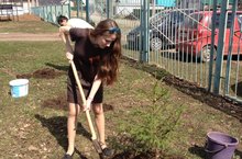 Сегодня, в рамках экологического двухмесячника, на территории школы была организована посадка саженцев деревьев и кустарников. Были посажены елочки, рябина и барбарис.