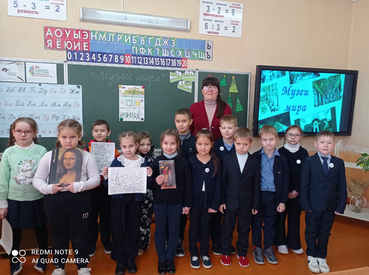 Библиотекарь городской библиотеки филиала №2, 13 декабря 2023, провела в 1 классе познавательный час «Музеи мира». Рассказала ребятам о том, какие бывают музеи. В ходе беседы дети поделились своими историями о том, в каких интересных местах им удалось побывать. Затем ребятам были представлены работы самых известных художников. Дети с интересом рассматривали картины, и слушали дополнения и описания к ним. Великие шедевры, музеи разных стран мира изумили ребят и привели в восторг. Также в ходе беседы, ребята вспомнили, как надо правильно вести себя в музеях. -