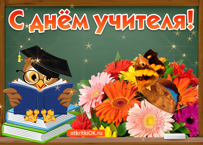 Дорогие наши учителя, поздравляем вас с Днём учителя! Спасибо вам за щедрость ваших сердец, безграничное терпение и понимание, преданность делу и любовь к своим ученикам. Быть учителем — нелёгкий труд, поэтому желаем вам здоровья, бодрости тела и духа. Пусть ученики вас уважают и любят, а их родители всегда помнят, кто привёл их детей на светлую дорогу знаний. -